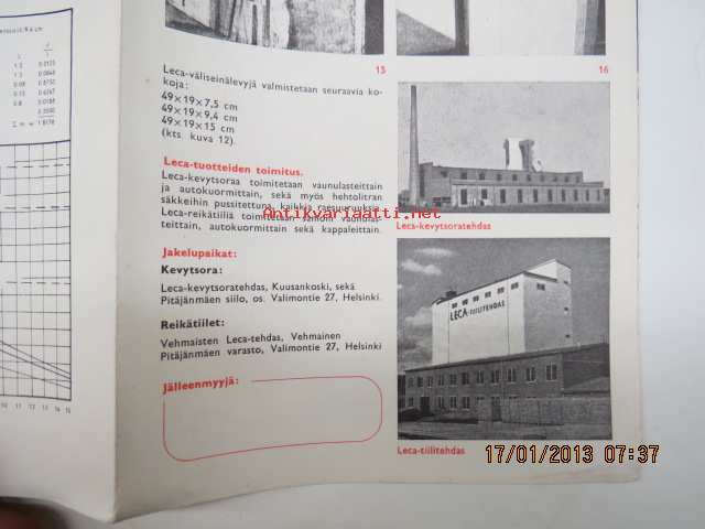 | Saatavilla | 1 kpl | | Julkaisuvuosi | 195? | | Sivuja | 6 | | Kunto | K2 | | Sidonta/painoasu | Pienpainate | | Kielet | Suomi |
