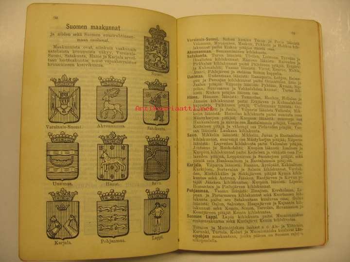 | Saatavilla | 1 kpl | | Julkaisuvuosi | 1904 | | Sivuja | 252 | | Painos | 1. | | Kunto | K2 | | kannessa kuluneet reunat, muutamia tahroja | | Sidonta/painoasu | Sidottu (kovak.) | | Kielet | Suomi |