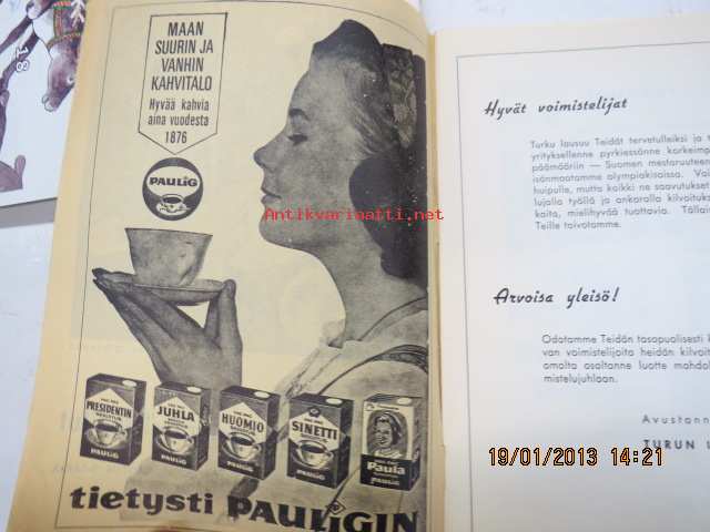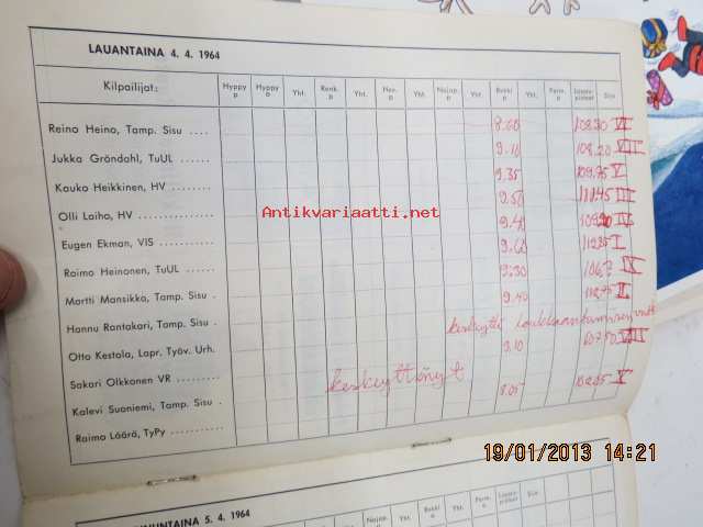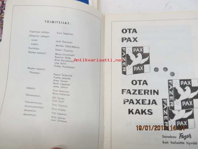 | Saatavilla | 1 kpl | | Julkaisuvuosi | 1964 | | Sivuja | 16 | | Kunto | K2 | | Sidonta/painoasu | Pienpainate | | Kielet | Suomi |