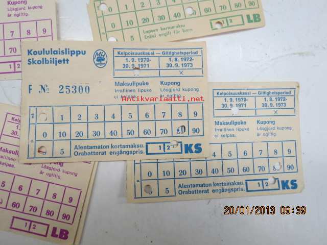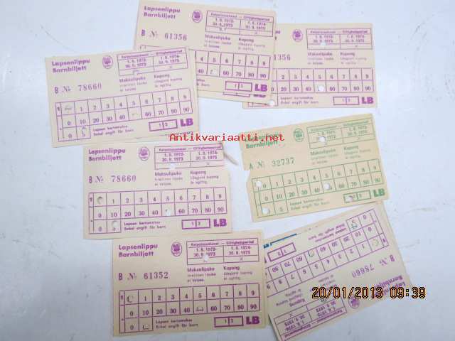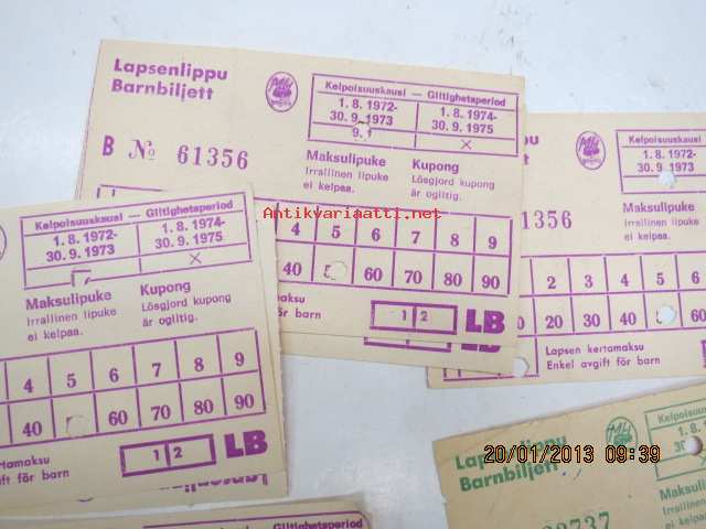 Matkahuolto lasntenlippuja 1972-75 yhteensä 13 kpl
