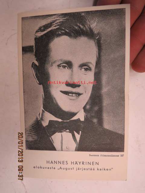 Hannes Häyrinen -elokuvapostikortti, Suomen Filmiteollisuus elokuvasta "August järjestää kaiken"