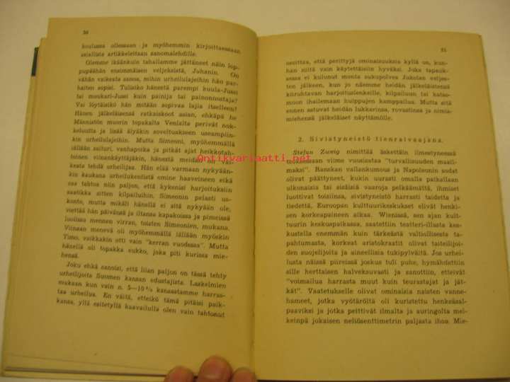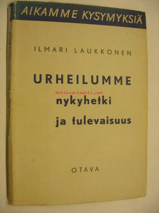 | Saatavilla | 1 kpl | | Julkaisuvuosi | 1946 | | Sivuja | 114 | | Painos | 1. | | Kunto | K3 | | Sidonta/painoasu | Sidottu (kovak.) | | Kielet | Suomi |