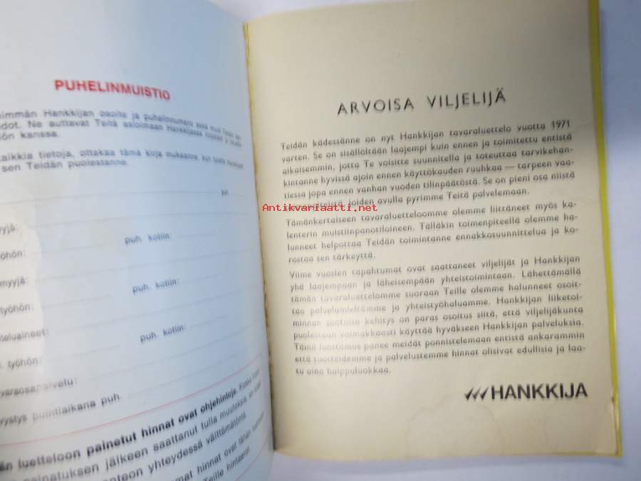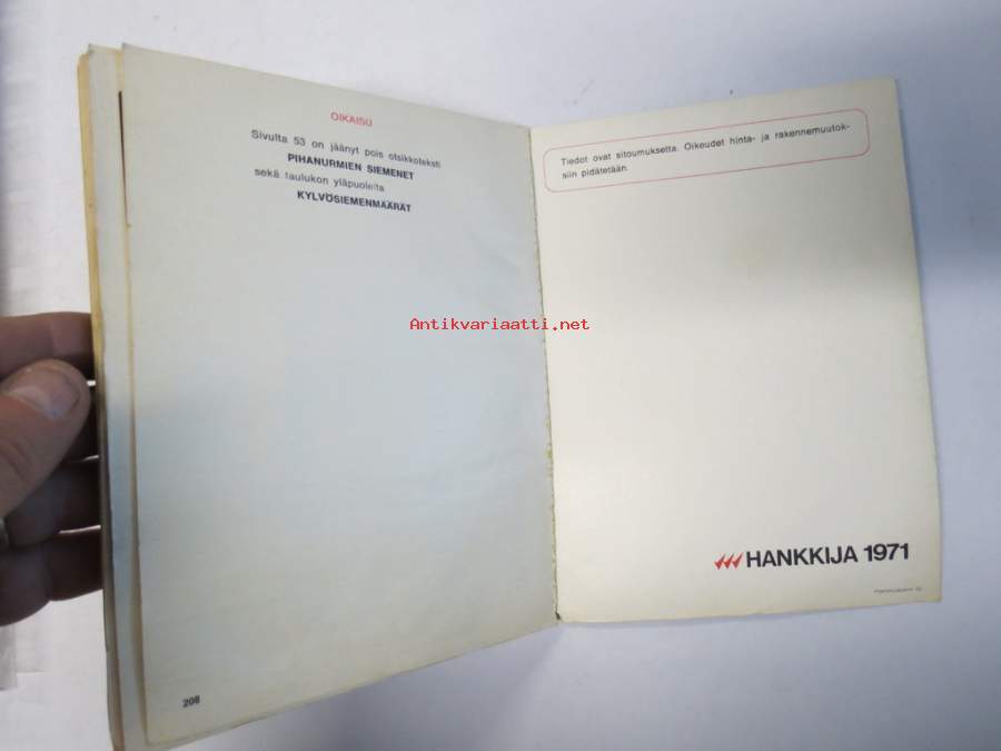 Hankkija - tavaraluettelo 1971 -luettelo