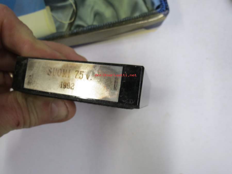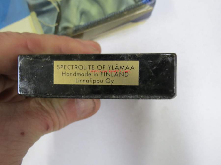 Suomi 75 - Spectrolite of Ylämaa - Handmade in Finland, Linnalippu Oy - pöytälippu pakkauksessaan, jalustassa hopealaatta, käyttämätön