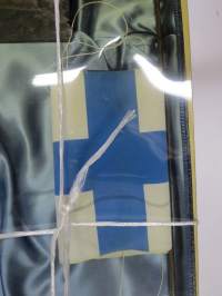 Linnalippu Oy, 1992Korkeus noin 45 cm, pakkauksen muovi hapertunut ja tummunut, puuttuu paloja.