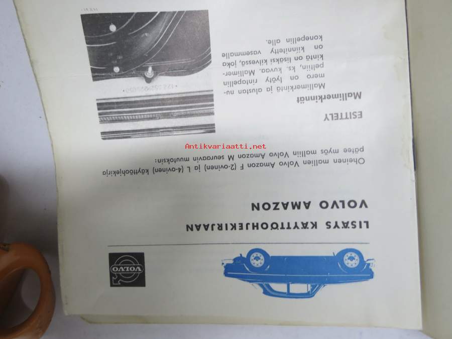 Volvo Amazon 2- ja 4-ovinen henkilöauto (121/122 S F ja L) rakenne, käyttö, huolto -käyttöohjekirja, painettu 12.65 eli alkaen vuosimallista 1966