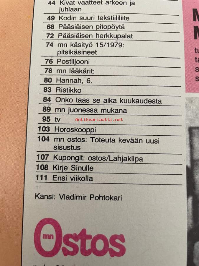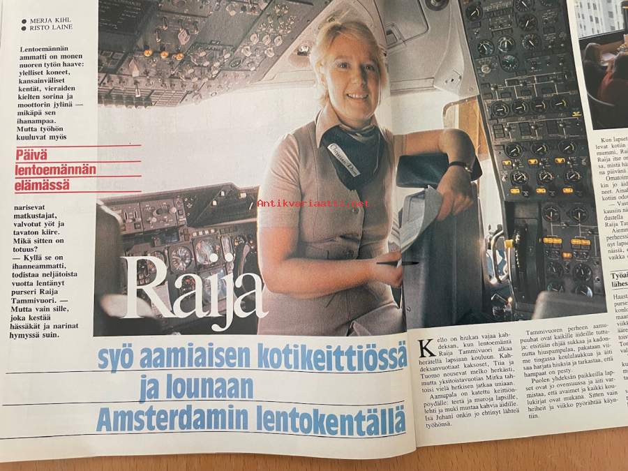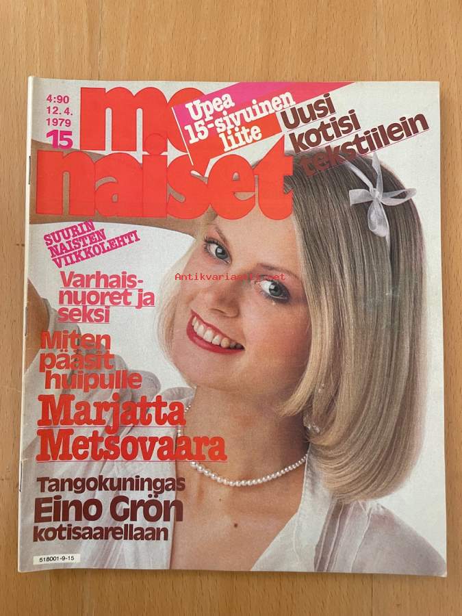 Me Naiset 1979 nr 15, Eino Grön kotisaarellaan, Marjatta Metsovaara, päivä lentoemännän elämässä Raija Tammivuori