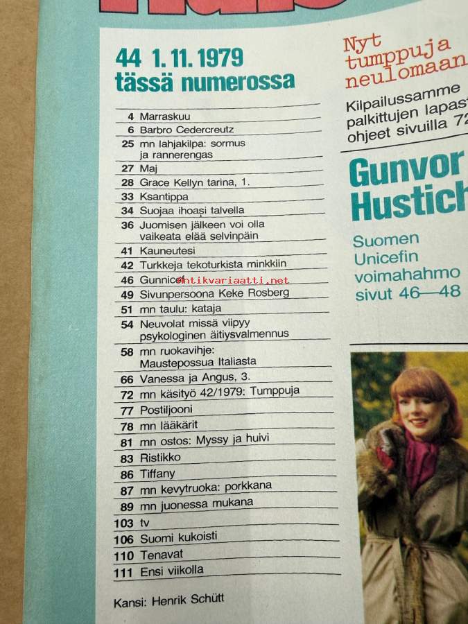 Me Naiset 1979 nr 44, Köyliön kartano, Finntastic, Liisa Rautavaara, Grace Kelly, Sivun persoona - Keke Rosberg