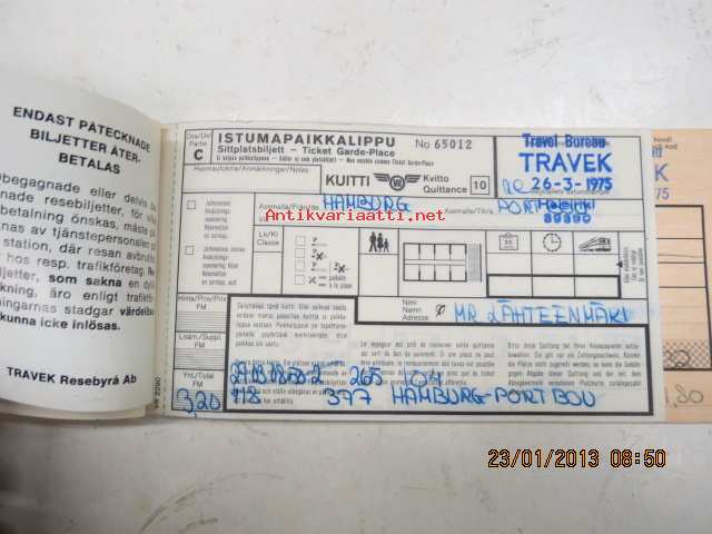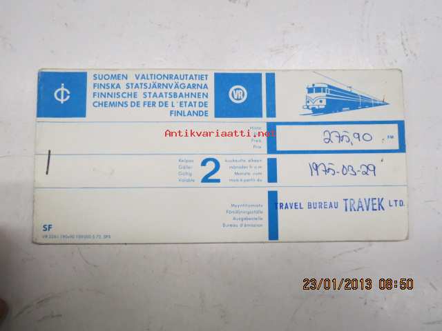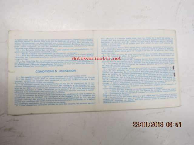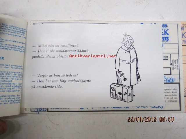 | Saatavilla | 1 kpl | | Julkaisuvuosi | 1975 | | Kunto | K3 | | Sidonta/painoasu | Pienpainate | | Kielet | Suomi, Ruotsi, Saksa, Ranska |