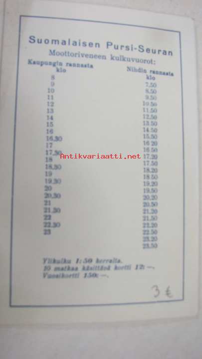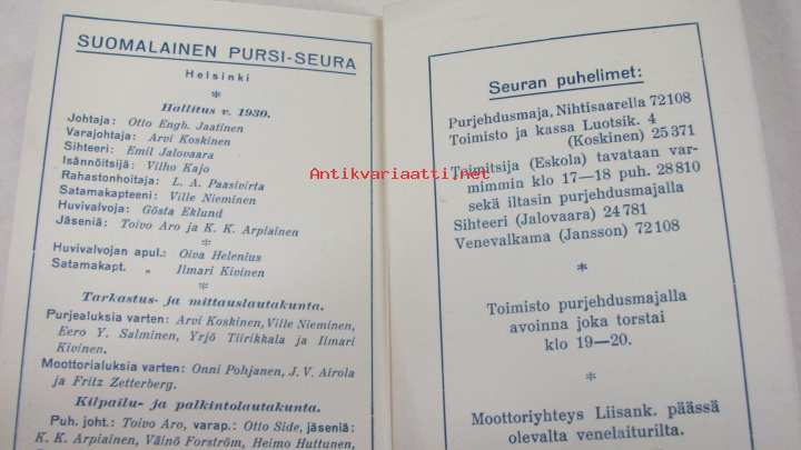 Suomalainen Pursi-Seura Helsinki 1930 ja kesäohjelma