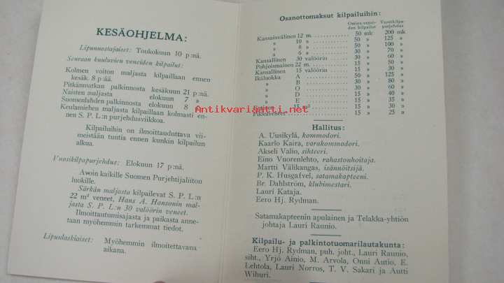Merenkävijät 1930 kesäohjelma