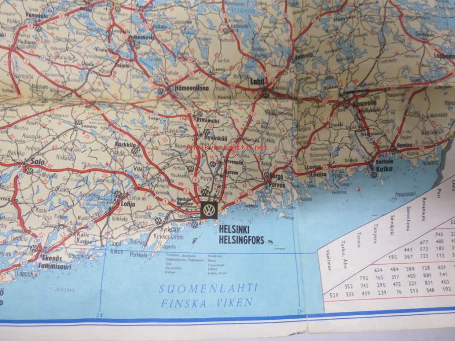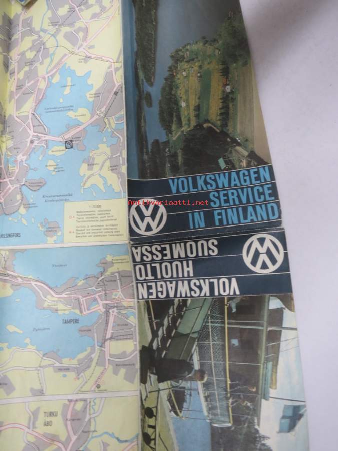 Volkswagen huolto Suomessa 1967 / VW Service in Finland -kartta / map, luettelo korjaamoista