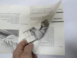 | Saatavilla | 1 kpl | | Julkaisuvuosi | 19?? | | Sivuja | 12 + 12 | | Kunto | K3 | | Sidonta/painoasu | Pienpainate | | Kielet | Suomi, Ruotsi |
