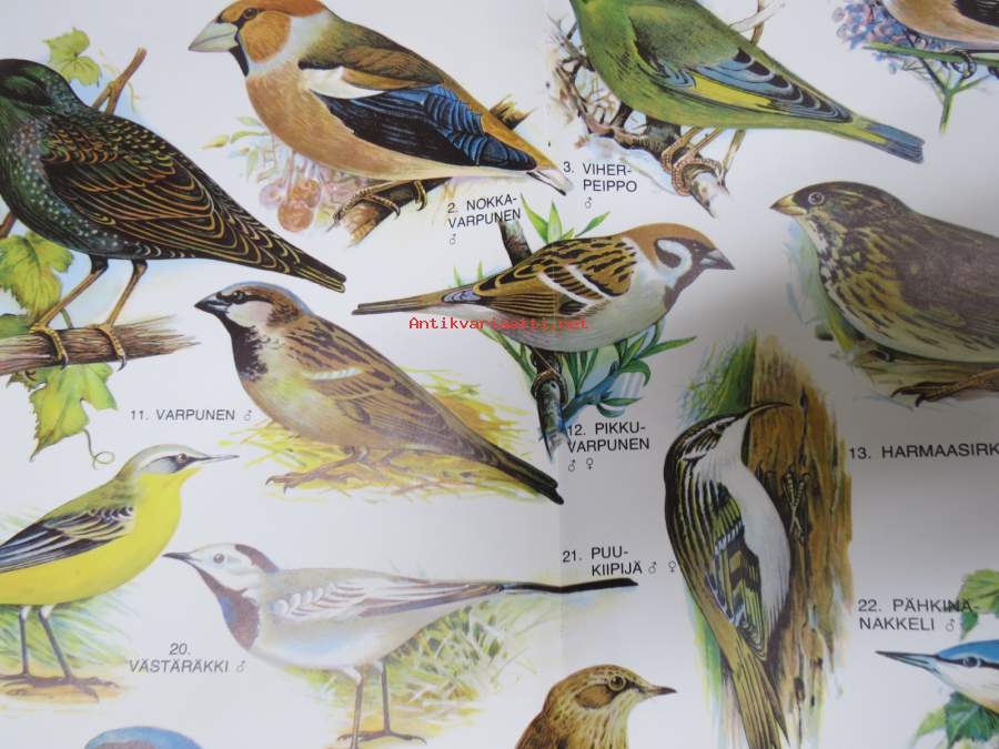 Laululintuja - Eläinmaailma-lehden keskiaukeamajuliste