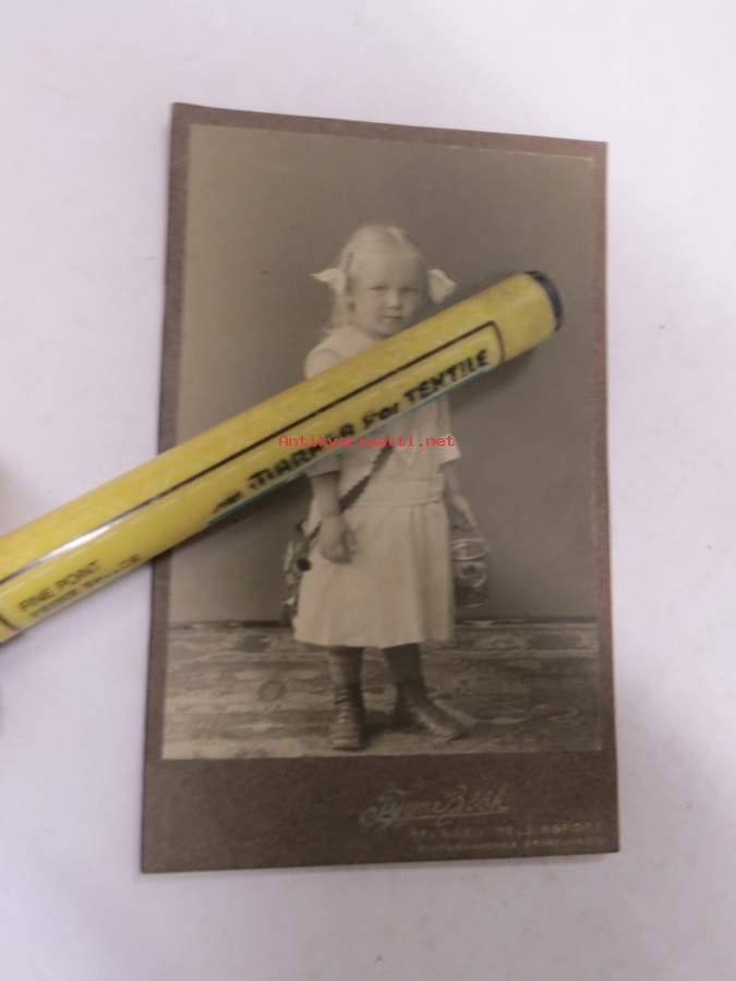 Olkalaukku & peltiämpäri, atelier Tyyne Böök, Helsinki -visiittikortivalokuva / carte de visite / cdv -valokuva
