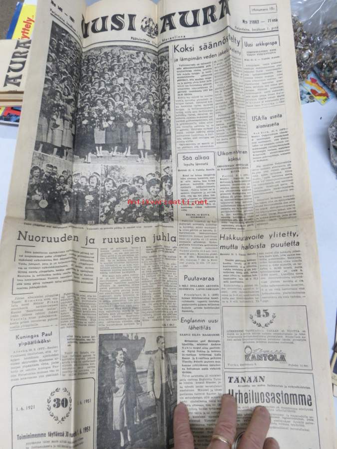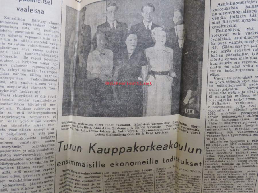 Uusi Aura pe 1.6.1951, Lakkiaiset, Koksi säännöstelty, Turun kauppakorkeakoulun ensimmäiset ekonomit, Hemmo Airamo, ym.