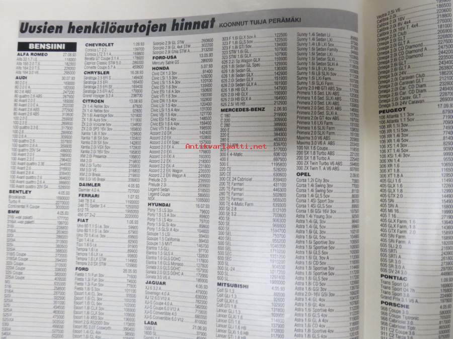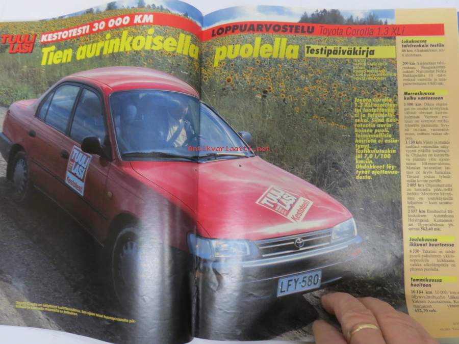 Tuulilasi 1993 nr 10, Toyota Corolla kestotesti 30 000 km, VW Golf, Renault 19, Saksan Ferrari-klubi Suomessa Alastarolla, Uusien henkilöautojen hinnat, ym.