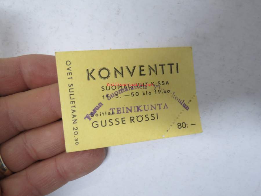 Konventti Suomalaisessa Yht. K:ssa 11.5.1950 - Gusse Rössi - Turun Suomalaisen Yhtesikoulun Teinikunta -pääsylippu