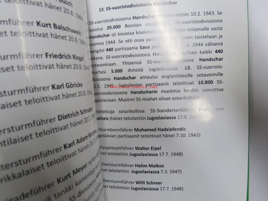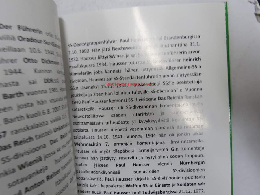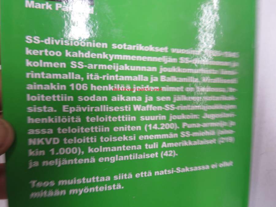 SS-divisioonien sotarikokset v. 1939-1945 (etulehdellä on Parlandin omiste ja nimikirjoitus kirjan saaneelle henkilölle)
