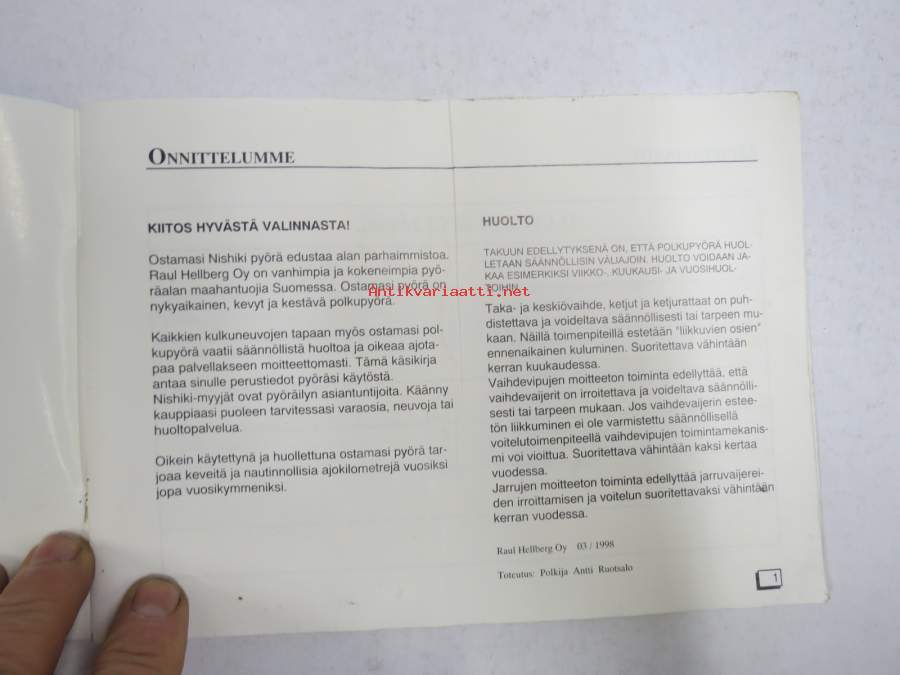 Nishiki polkupyörän omistajan käsikirja (käyttöohjekirja)