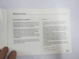 | Saatavilla | 1 kpl | | Julkaisuvuosi | 1998 | | Sivuja | 36 | | Kunto | K2 | | Käytössö ollut | | Sidonta/painoasu | Nidottu (pehmeäk.) | | Kielet | Suomi |