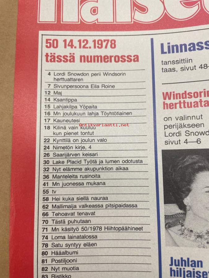 Me Naiset 1978 nr 50 (14.12.), Sivun persoona - Eila Roine, Saarijärven keisari - Väinö Rautiainen, Illan kuningattaret (Linnan juhlat), Bergmanin Syyssonaatti