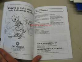 | Saatavilla | 1 kpl | | Julkaisuvuosi | 1992 | | Sivuja | 73 | | Painos | 1. | | Kunto | K4 | | Sidonta/painoasu | Nidottu (pehmeäk.) | | ISBN | 951-9008-56-X | | Kielet | Suomi |