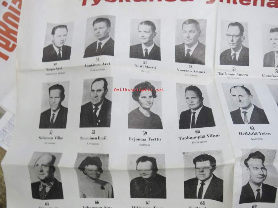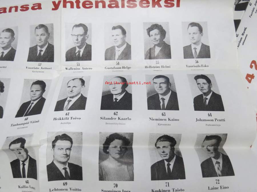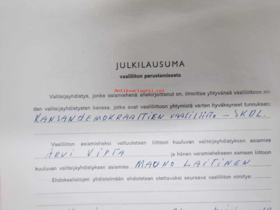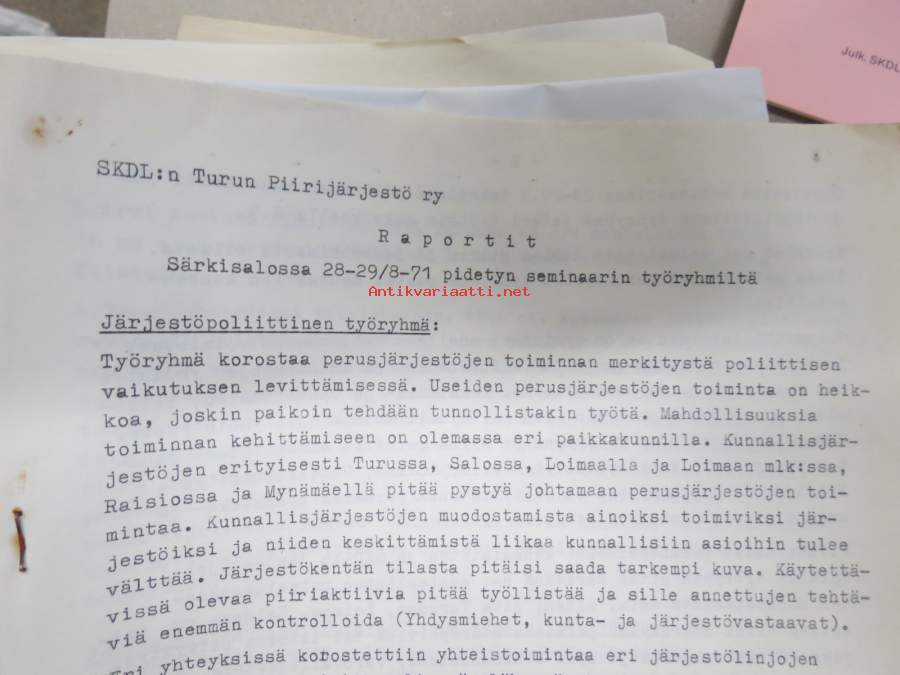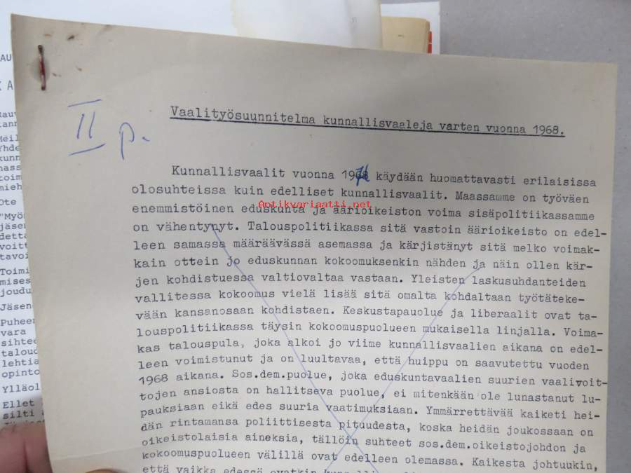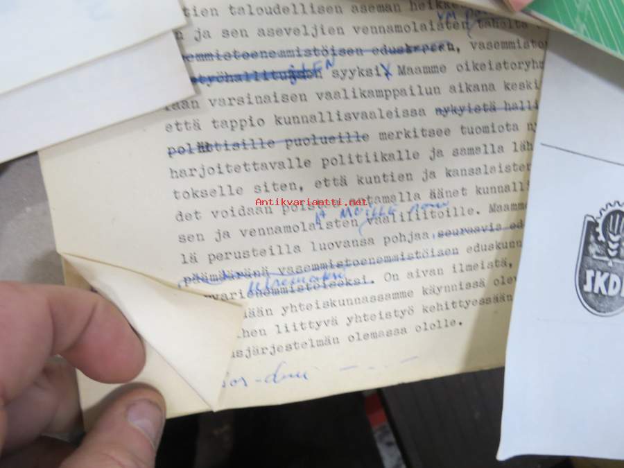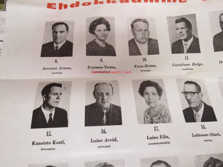 Monenlaisia mainoksia, asiakirjoja, poliittisia ja kunnallisiakin jukaisuja tavoitteena vasemmistolainen Kaarina, paria isoa ehdoasasettelujulistetta ym.