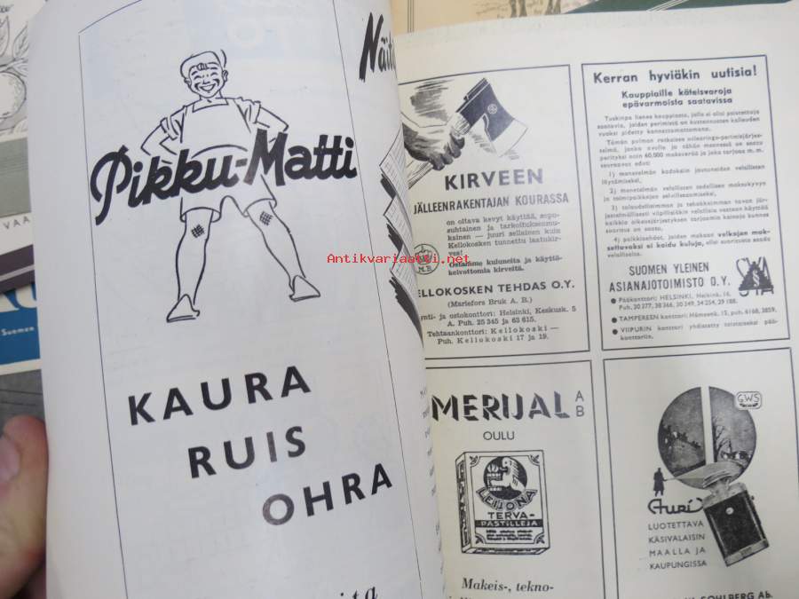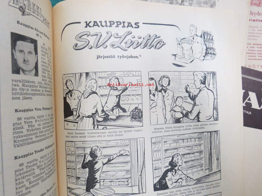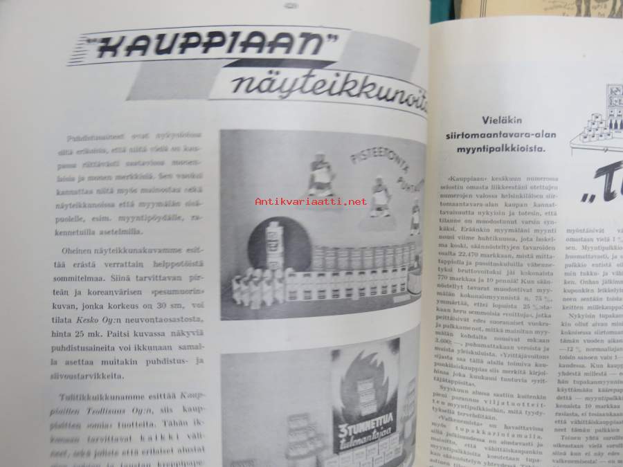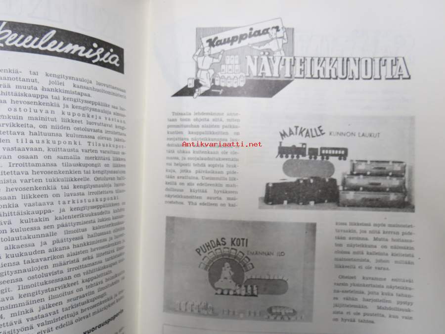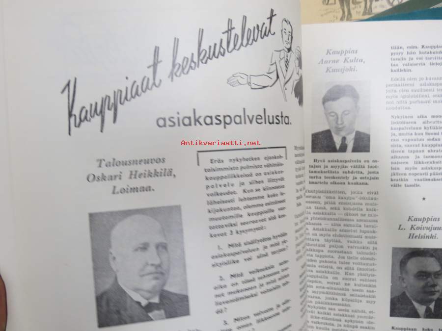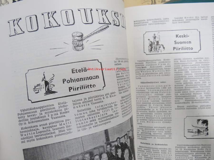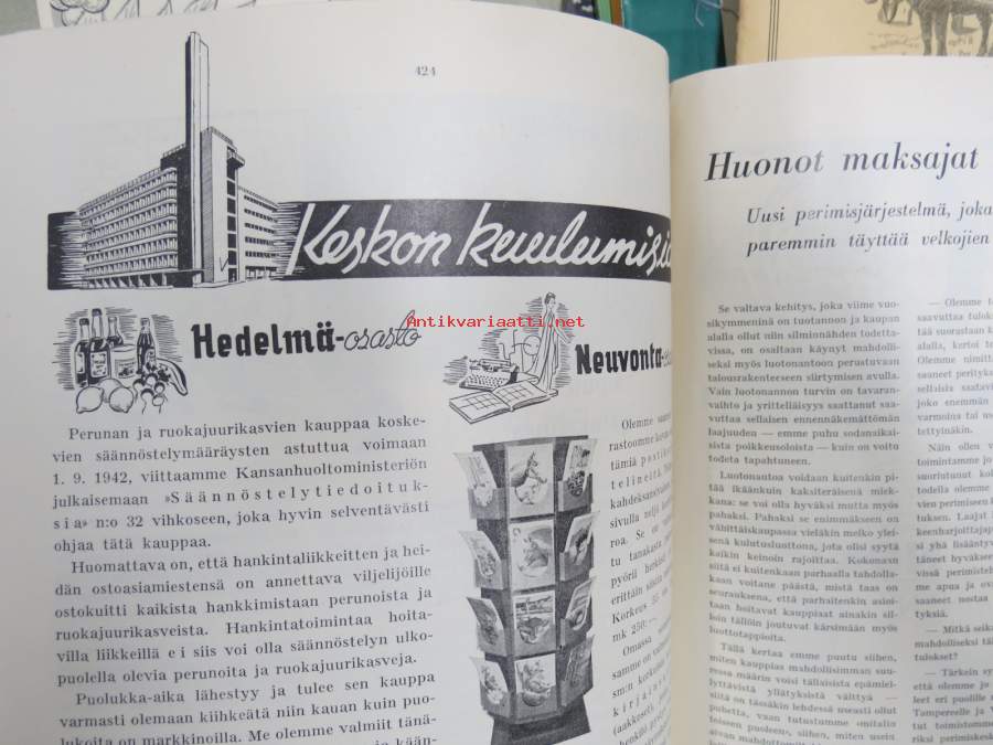 Kauppias -lehtiä noin 40 kpl erä vv. 1942-53, lehdissä runsas sisältö ja ajankuvaa, paljon mainoksia, tuotemerkkejä, asia-artikkeleita, pula-ajan asiaa yms.