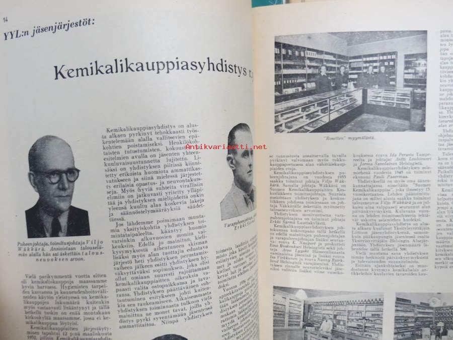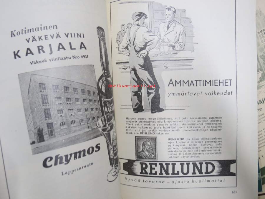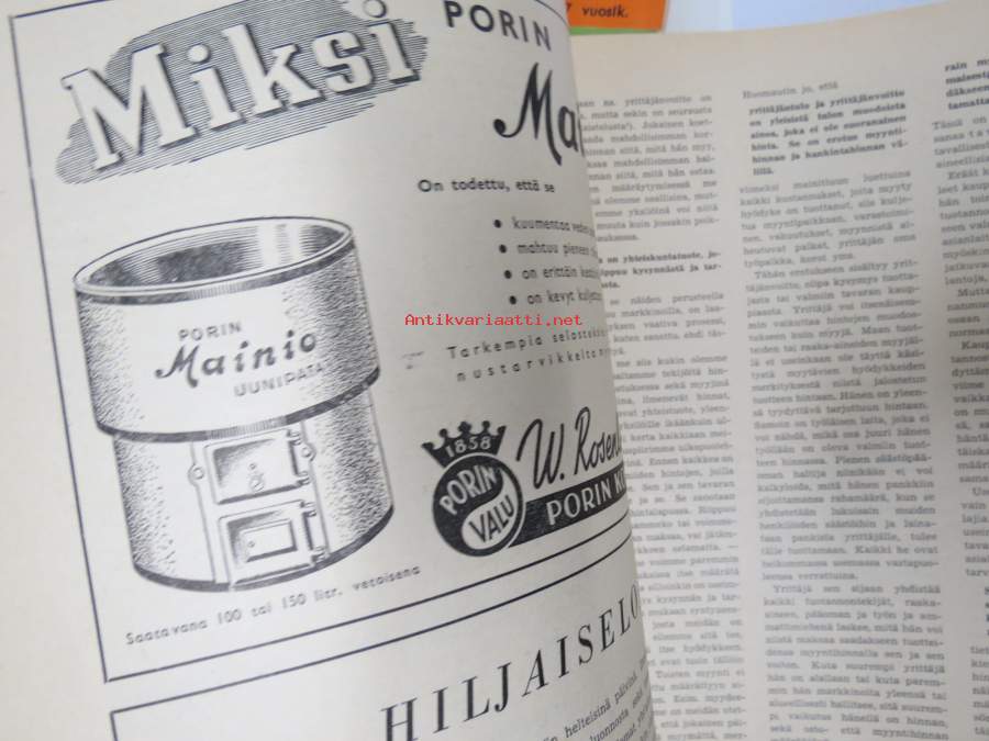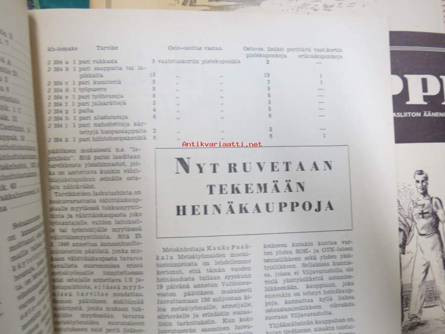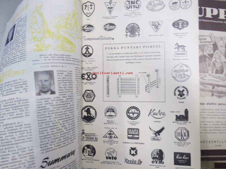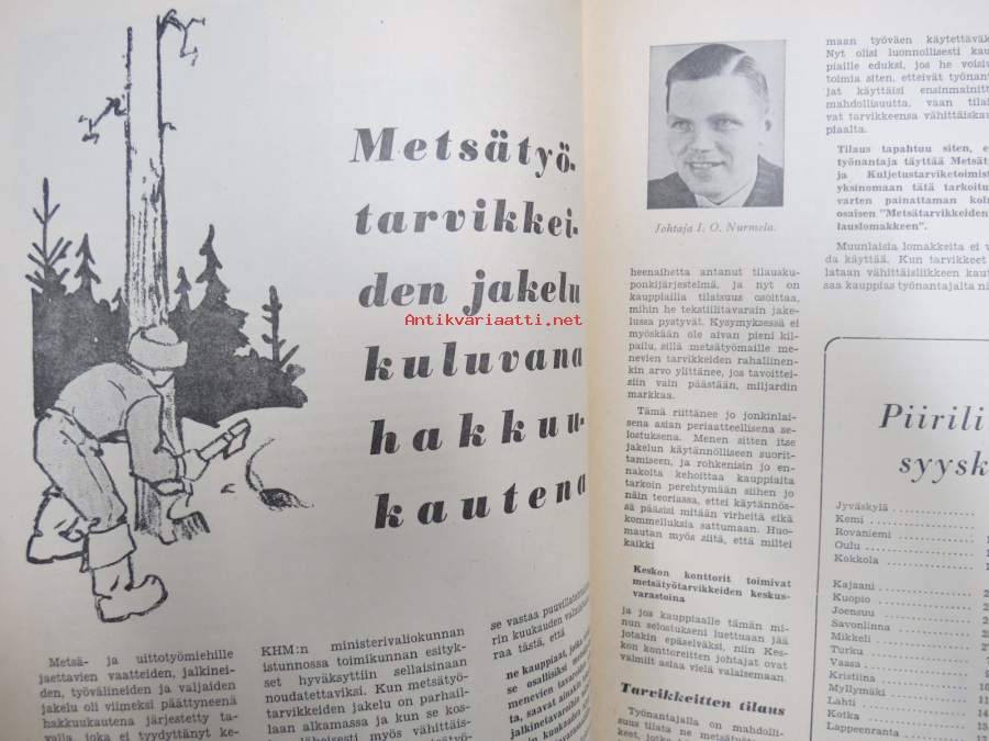 Kauppias -lehtiä noin 40 kpl erä vv. 1942-53, lehdissä runsas sisältö ja ajankuvaa, paljon mainoksia, tuotemerkkejä, asia-artikkeleita, pula-ajan asiaa yms.