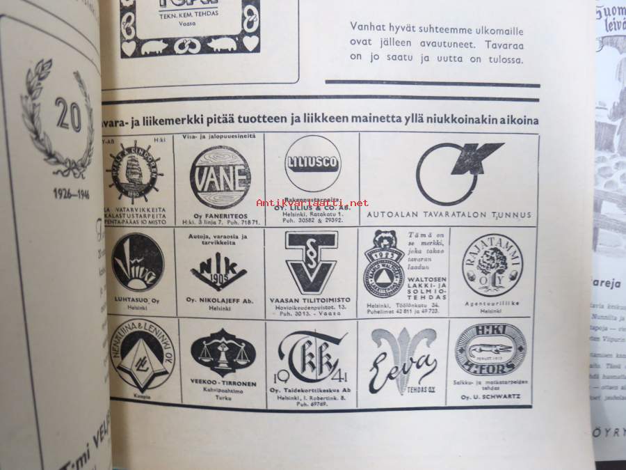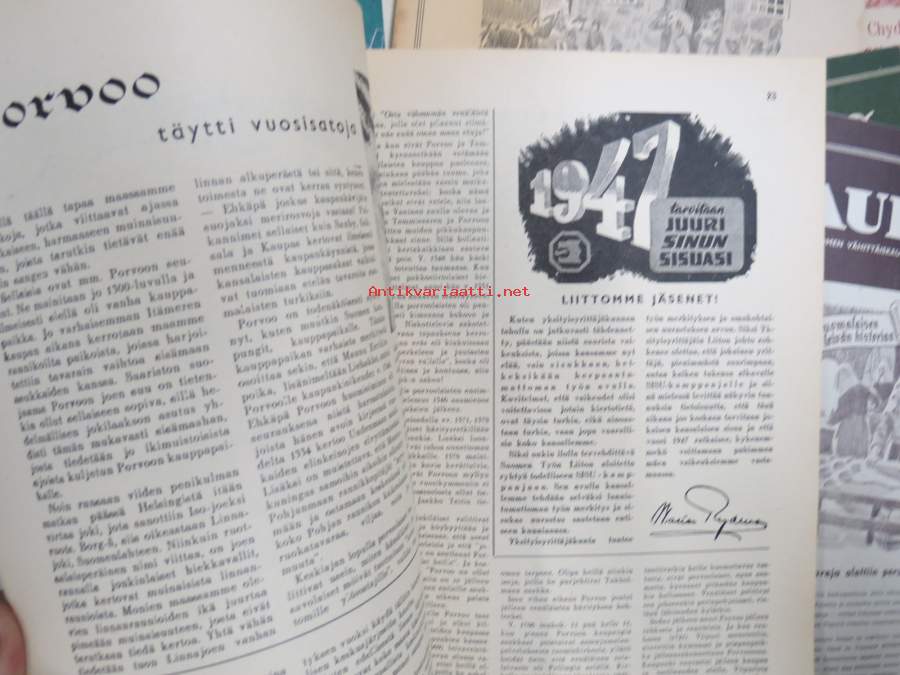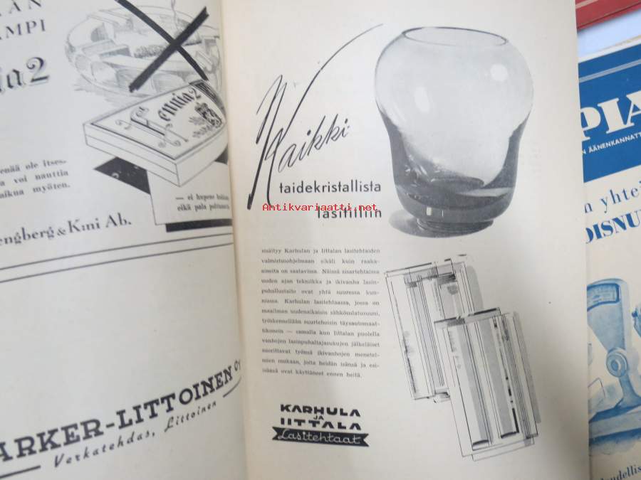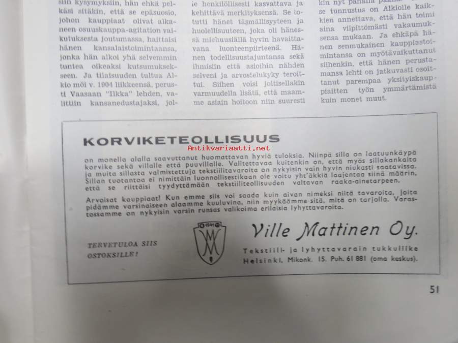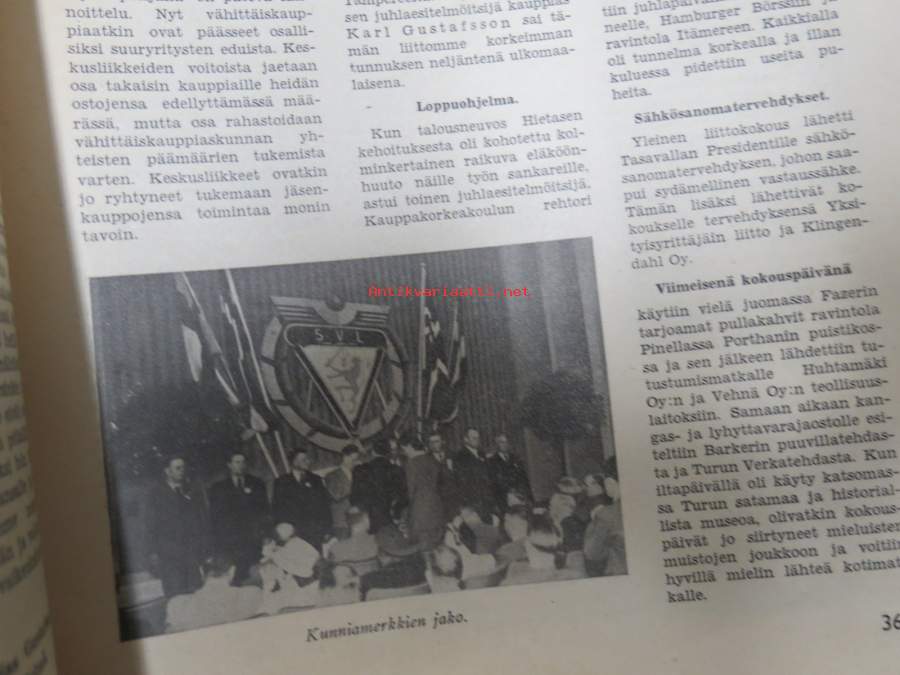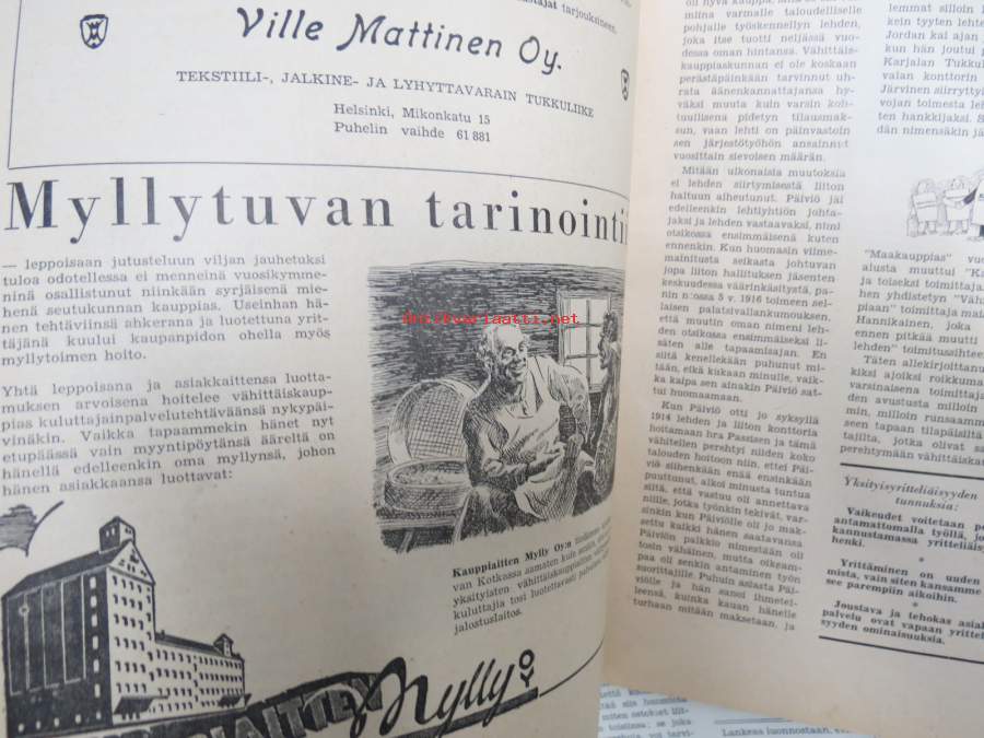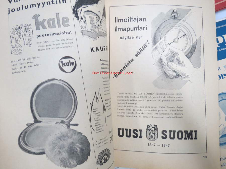 Kauppias -lehtiä noin 40 kpl erä vv. 1942-53, lehdissä runsas sisältö ja ajankuvaa, paljon mainoksia, tuotemerkkejä, asia-artikkeleita, pula-ajan asiaa yms.