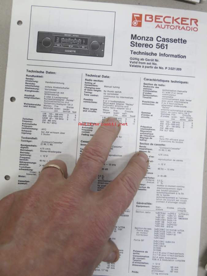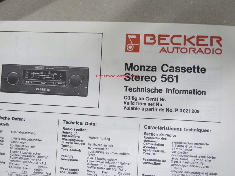 Becker Monza Cassette Stereo 561 - Technische Information / Technical Data / Caractéristiques techniques -tekniset tiedot, kytkennät, korjaus, varaosat, monikielinen