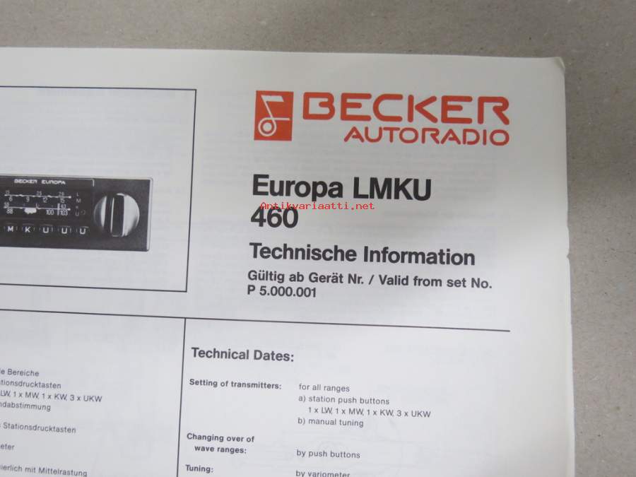 Becker Europa LMKU 460 - Technische Information / Technical Data -tekniset tiedot, kytkennät, korjaus, varaosat