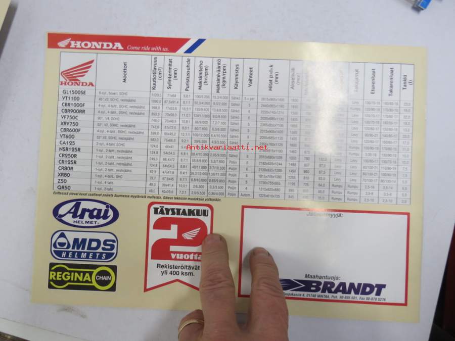 Honda 1995 moottoripyörämallisto -myyntiesite