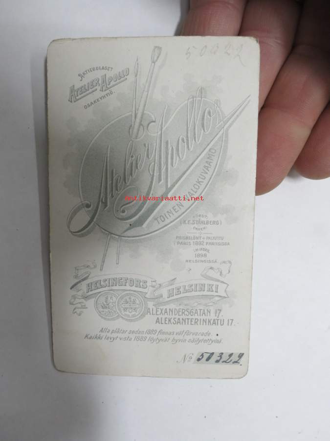 Neiti Pörrö-Puhvi, Atelier Apollo - Andra Ateliern, Helsinki -visiittikorttivalokuva / carte de visite / cdv