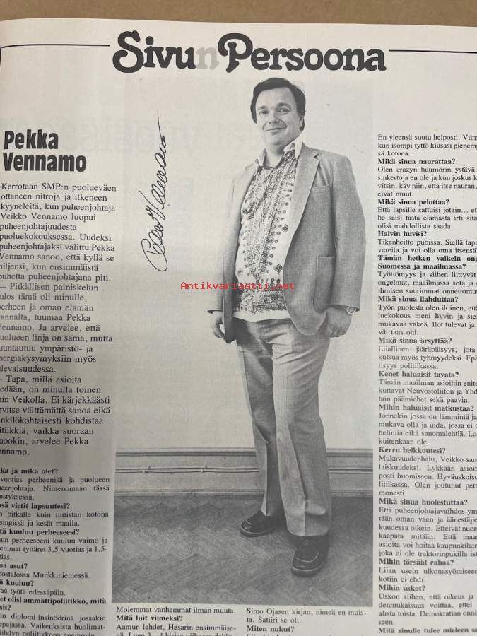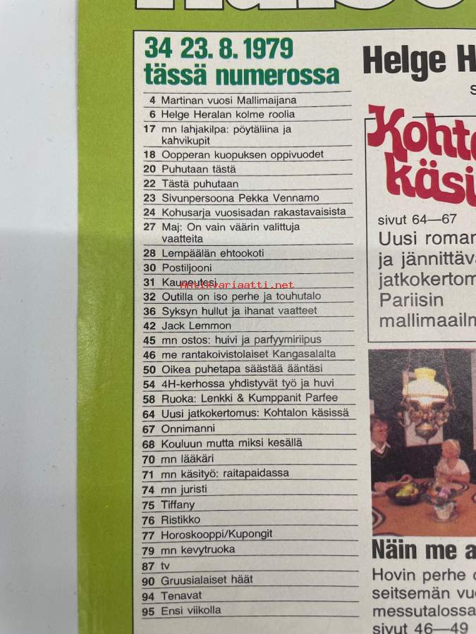 Me Naiset 1979 nr 34 (23.8.), Martina Kallionalusta, Helge Herala, Raili Viljakainen, sivun persoona Pekka Vennamo, Me rantakoivistolaiset Kangasalta