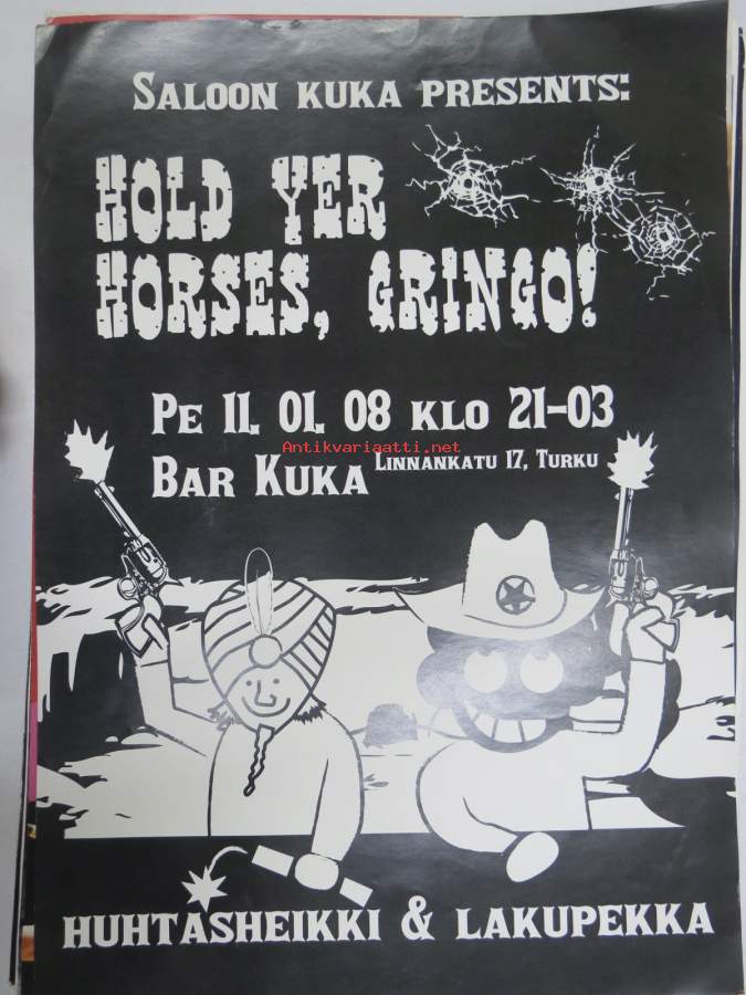 Hol yer Horses, Gringo dj:t lakupekka ja huhtasheikki - Bar Kuka (Turku) -keikka- / näyttelyjuliste