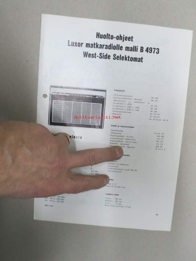Luxor matkaradio B 4973 West-Side Selektomat -huolto-ohje