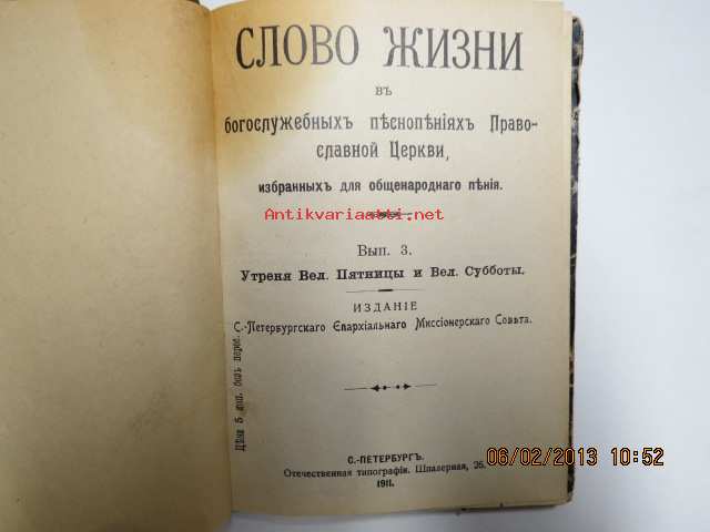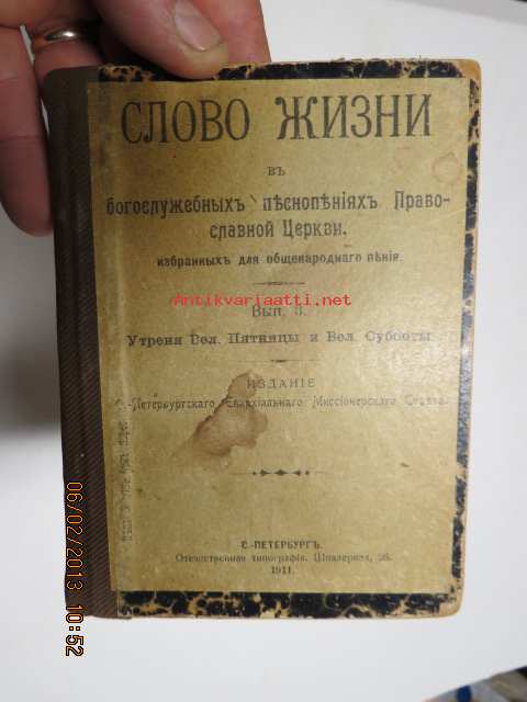 Slava sisni v bogosclusebnih... -venäläinen uskonnollinen kirja v. 1911, painettu Pietarissa -"sanaa jumalankuulijoille..."