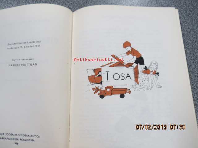 | Saatavilla | 1 kpl | | Julkaisuvuosi | 1958 | | Sivuja | 91 | | Painos | 3. | | Kunto | K2 | | Sidonta/painoasu | Kuvitettu kovakantinen | | Kielet | Suomi |