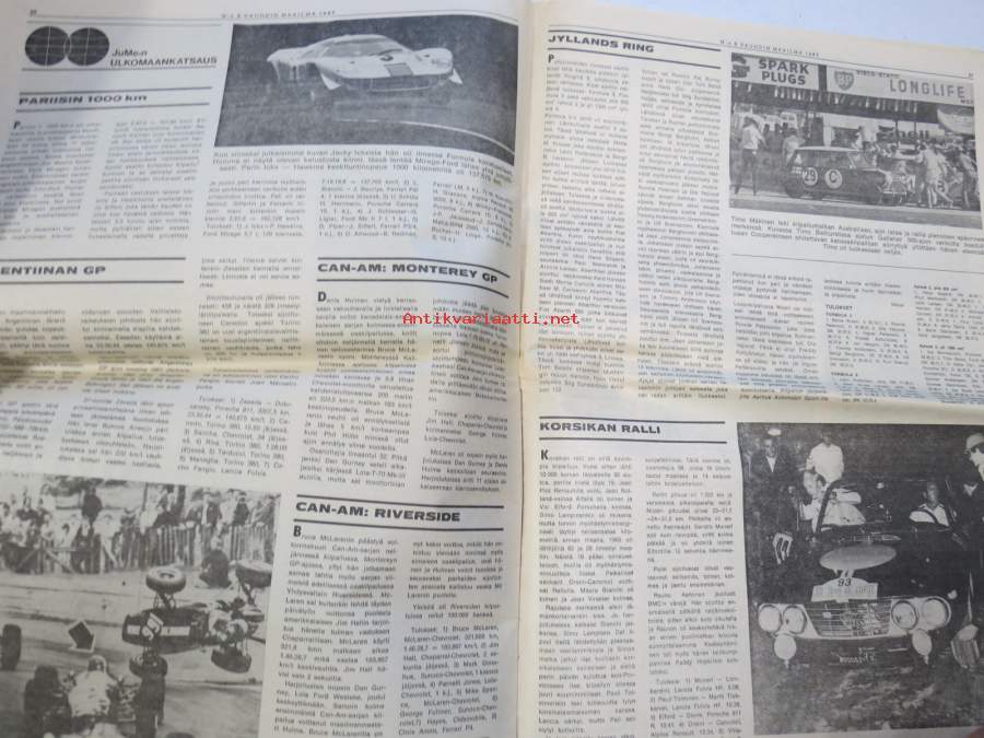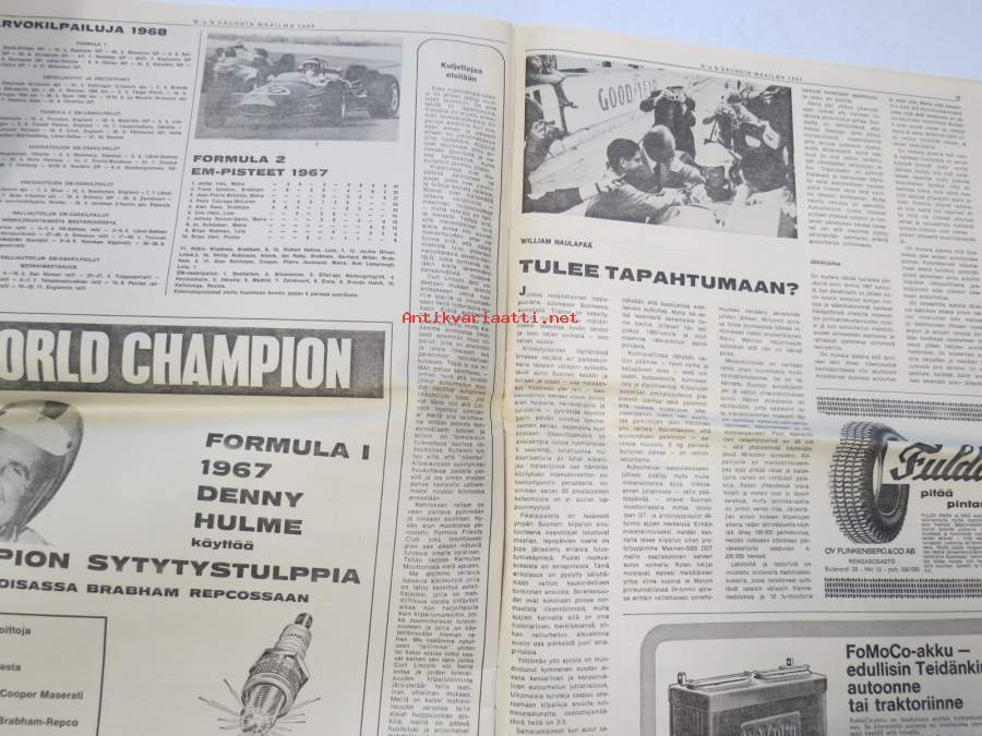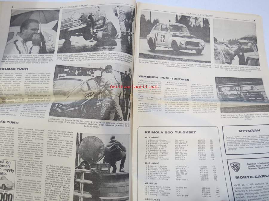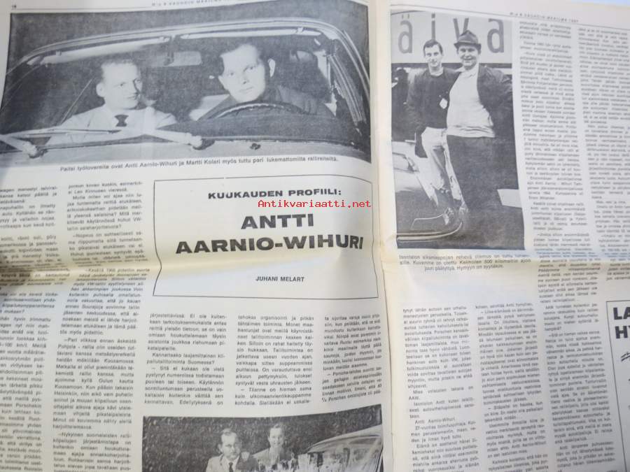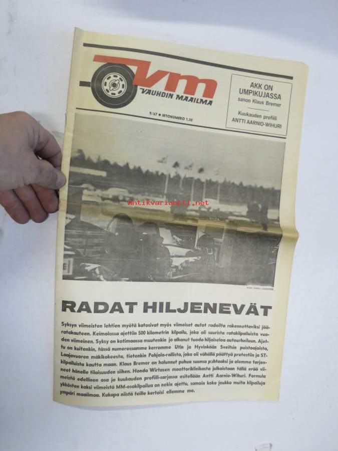 Vauhdin Maailma 1967 nr 9 sis. mm. artikkelit / kuvat / mainokset; Pedro Rodriguez Dela Vega, AKK umpikujassa, Keimola 500, Pohjola-ralli, Antti Aarnio-Wihuri