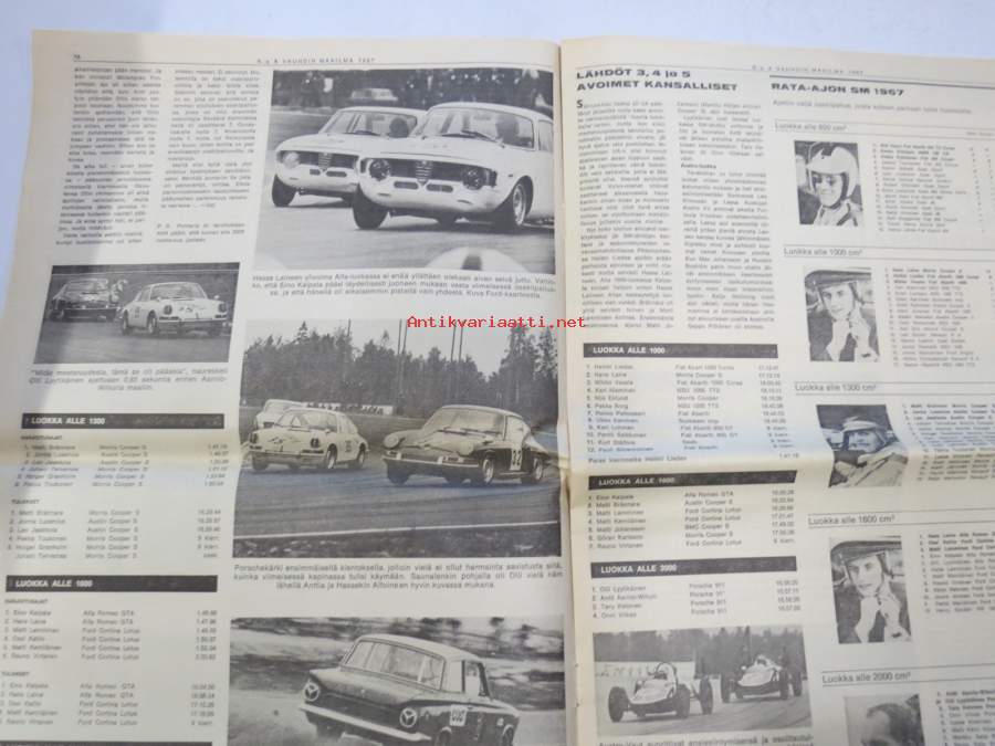 Vauhdin maailma 1967 nr 8, sis. mm. seur. artikkelit / kuvat / mainokset; Jätkä mä meen ensin, Saammeko esitellä Jussi Lagerblom autourheilun Aladin, III