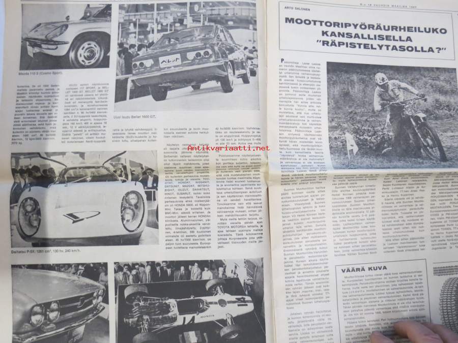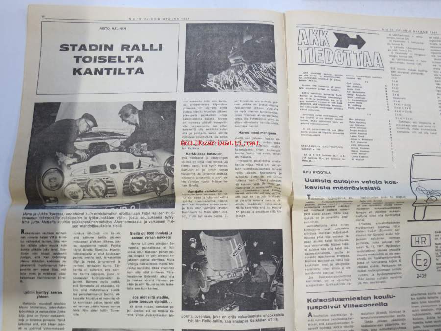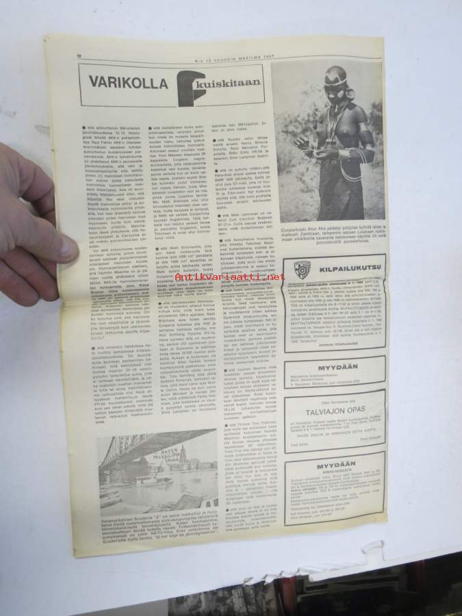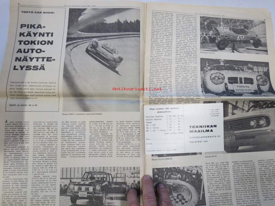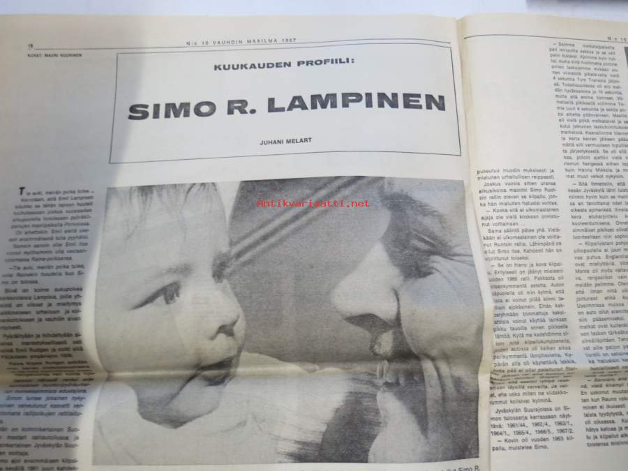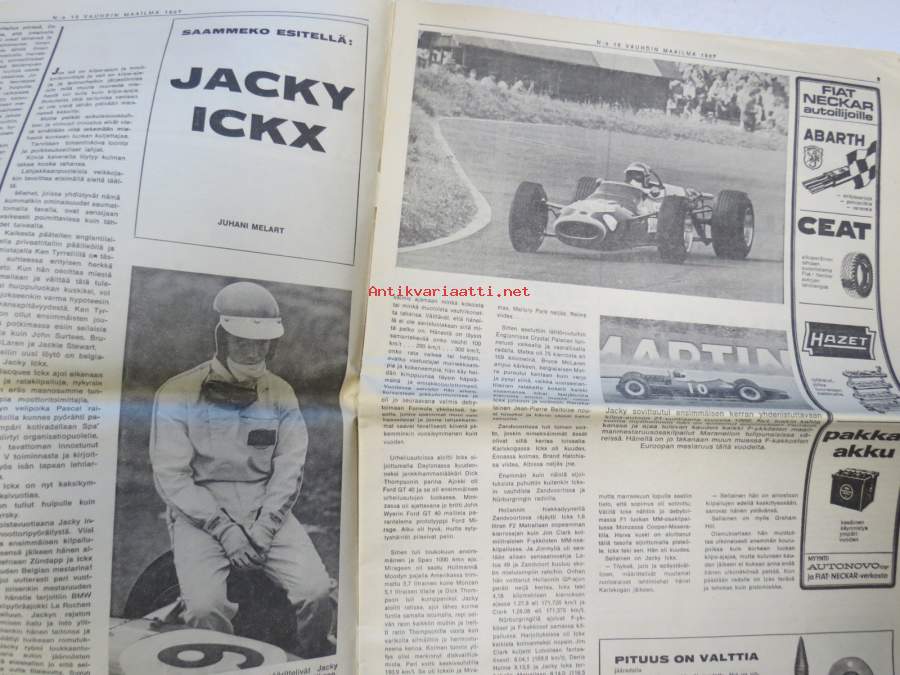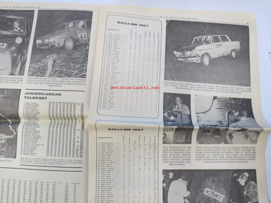 Vauhdin maailma 1967 nr 10, sis. mm. seur. artikkelit / kuvat / mainokset; Vuoden viimeinen, Jacky Ickx, Klaus Bremer umpikujassa?, AKK, Pikakäynti Tokion autonäyttelyssä, VIII Helsinki-ralli, Stadin ralli toiselta kantilta (mekaanikot), Kuukauden profiili - Simo R. Lampinen, Ford GT 40, Volvo Amazon 122 S, ym.27 x 42 cm.