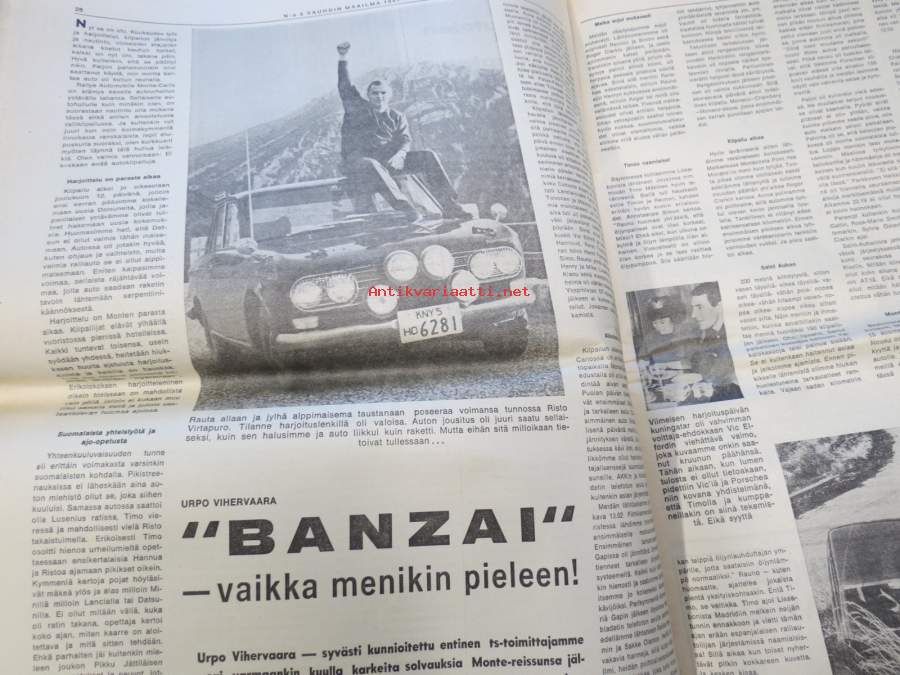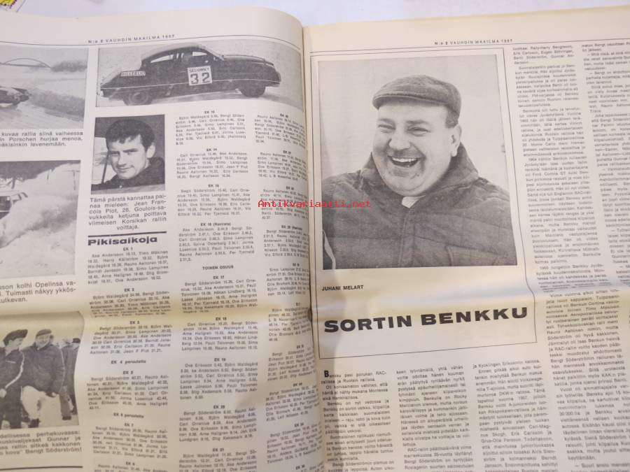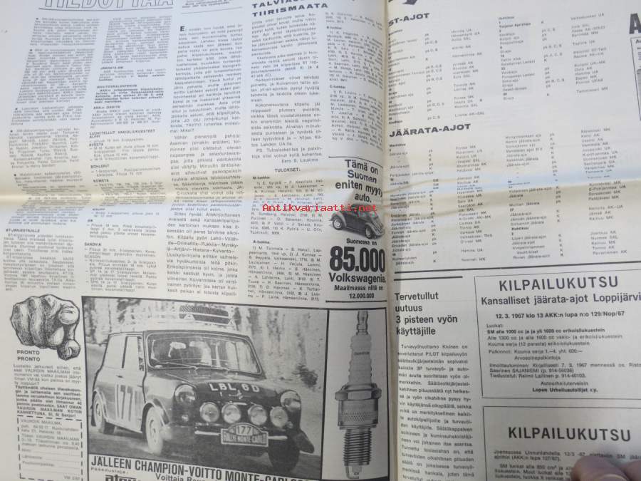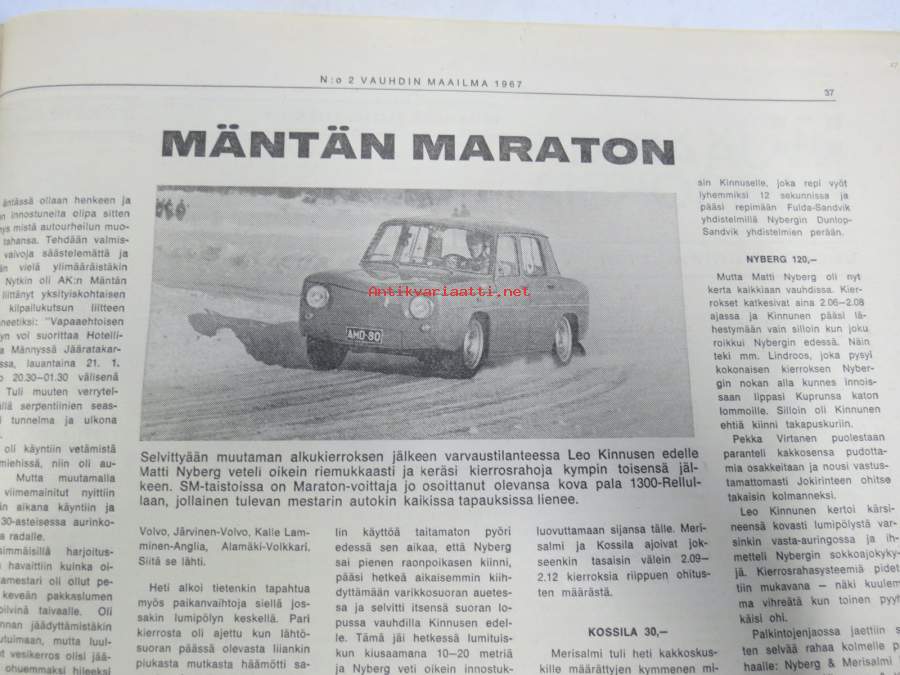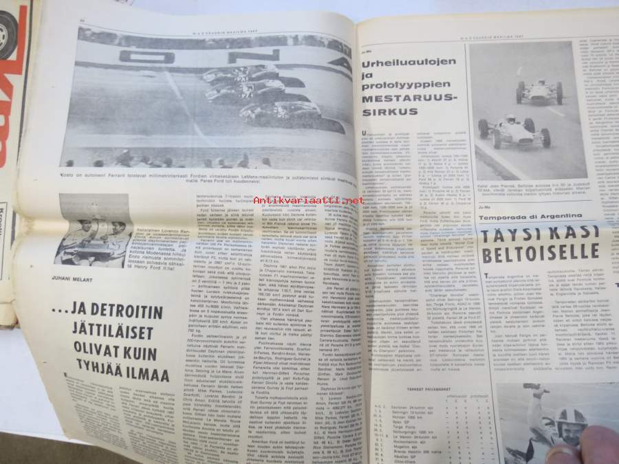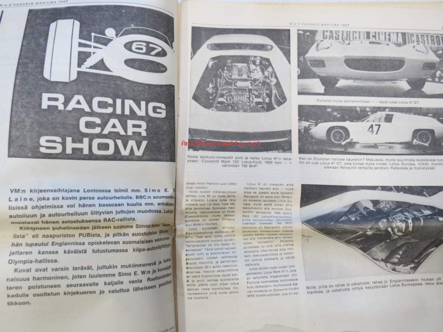 Vauhdin maailma 1967 nr. 2 -mm. Onni onnettomuudessa, Racing Car Show Lontoo, Ruotsin ralli taika ei taittunut, Tunturi rallissa tuulee, Antakaa lappiin Ralli-Sm osakilpailu, Hyvinkään sveitsin talviralli, Miks mun aina pitää voittaa-Risto Einto, Urheiluautojen ja prototyyppien mestaruussirku... Daytona oli ferrarin ja italialaisten....Detroitin jättiläiset olivat kuin ilmaa,