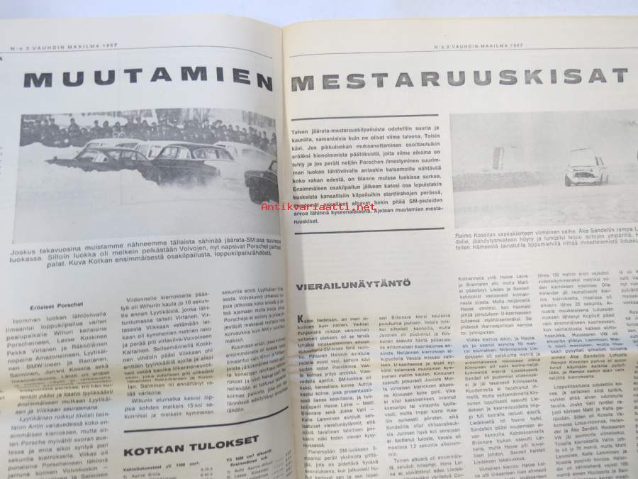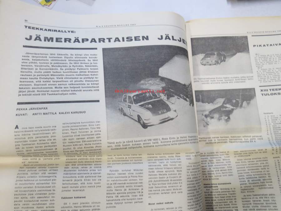 Vauhdin maailma 1967 nr. 2 -mm. Onni onnettomuudessa, Racing Car Show Lontoo, Ruotsin ralli taika ei taittunut, Tunturi rallissa tuulee, Antakaa lappiin Ralli-Sm