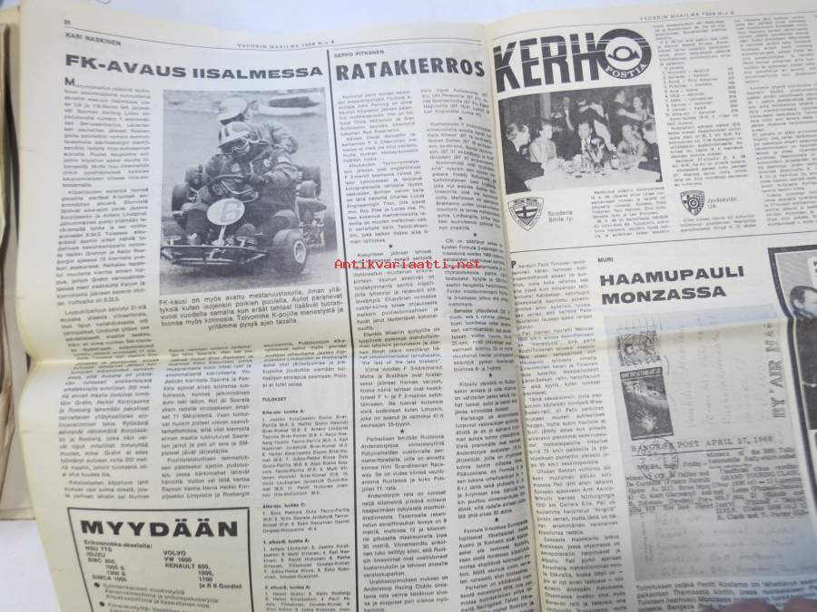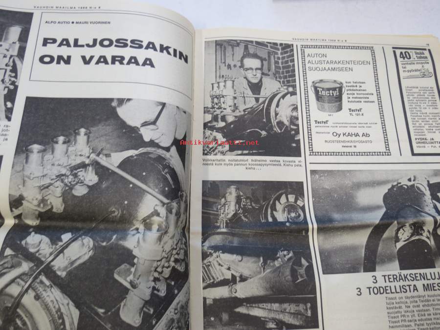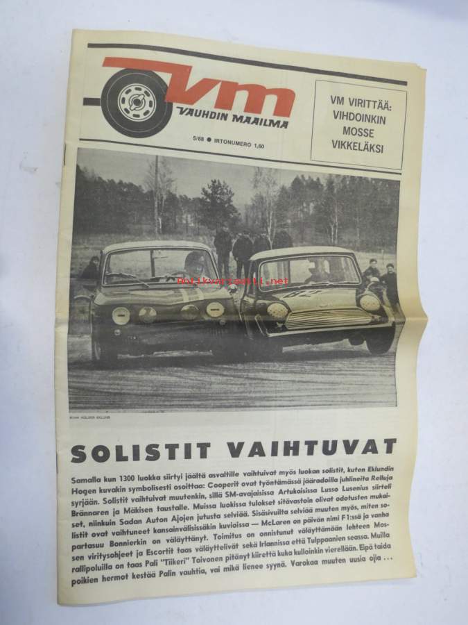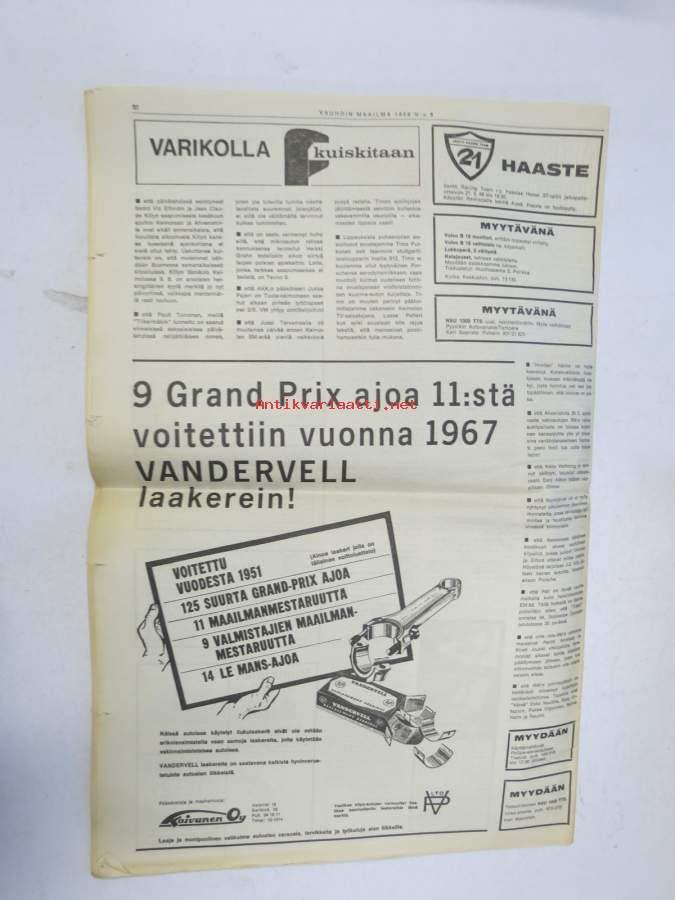 Vauhdin Maailma 1968 nr 5 sis. mm. artikkelit / kuvat / mainokse; Antti Kytölä, Sadan Auton Ajot, Eino Kalpala, XX Tulppaaniralli, Helena Suikkanen, Ford Cortina GT, GP Matra ym.