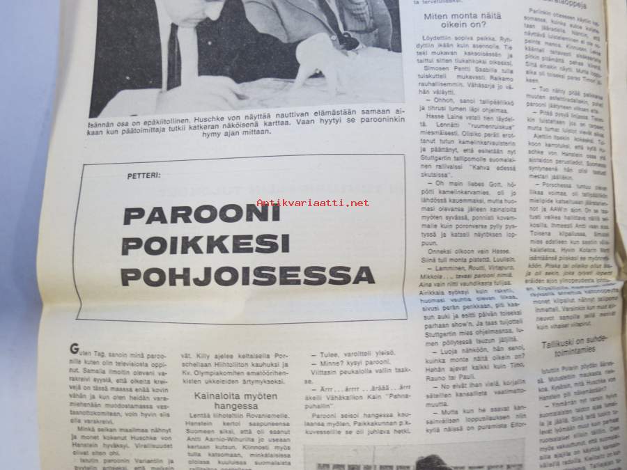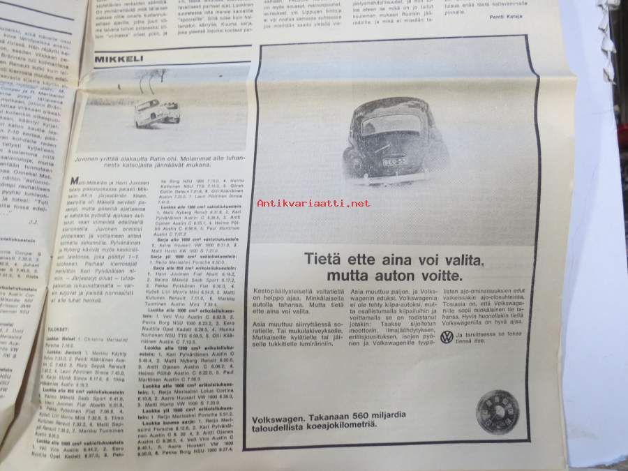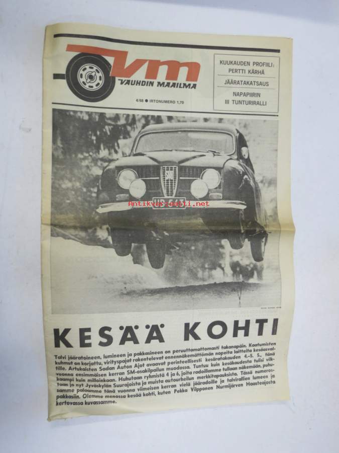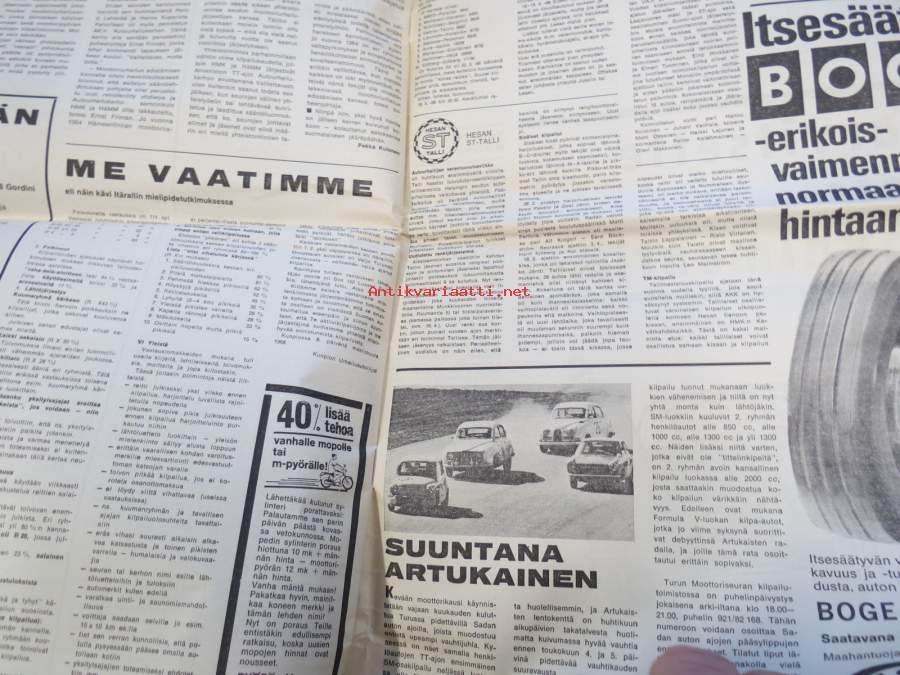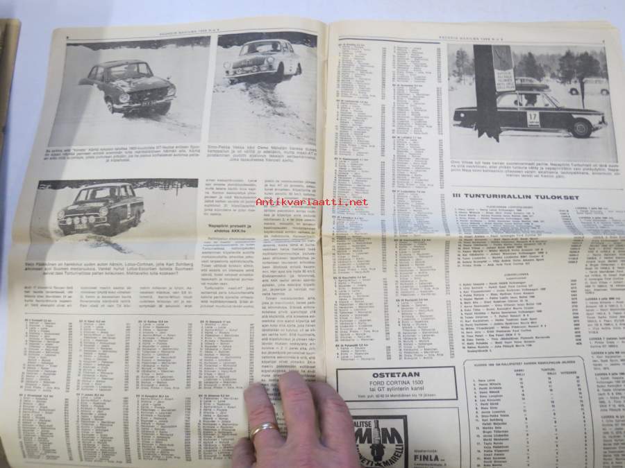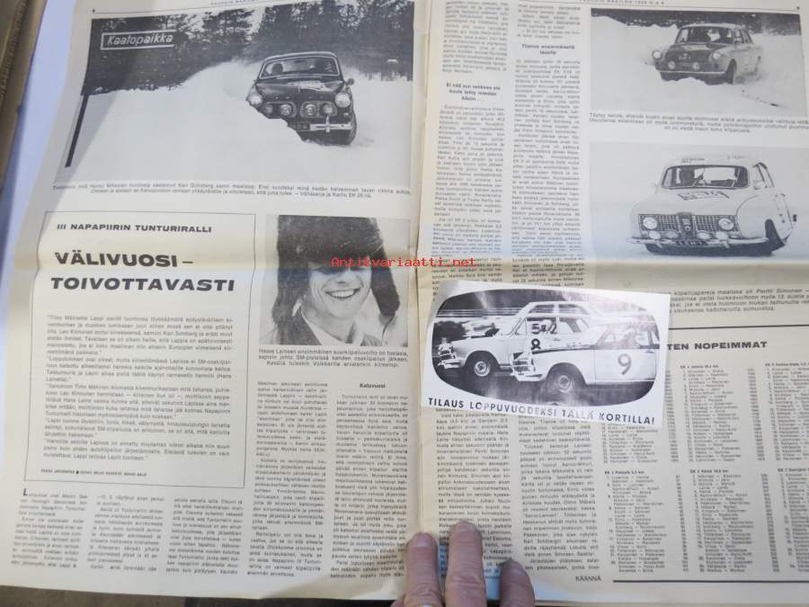 Vauhdin Maailma 1968 nr 4 sis. mm. seur. artikkelit / kuvat / mainokset; Esittelyssä Patricia Moss-Carlsson, III Napapiirin Tunturiralli, Parooni Huschke von