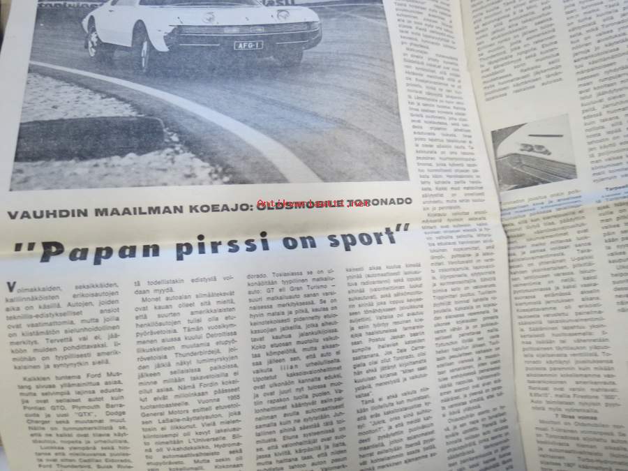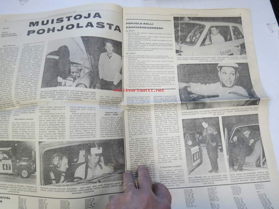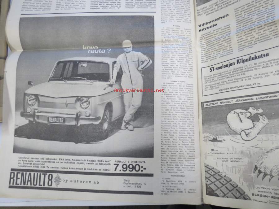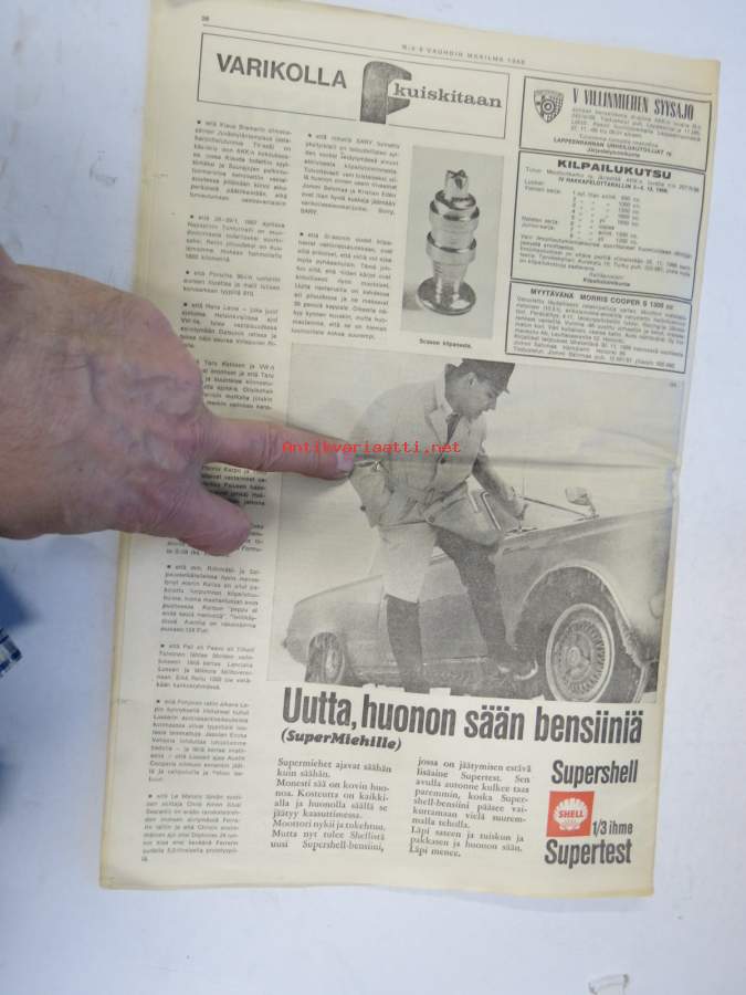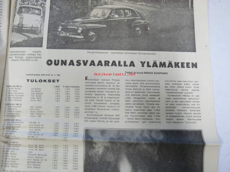 Vauhdin maailma 1966 nr 9, sis. mm. seur. artikkelit / kuvat / mainokset; Uusi Formula 2 Ford-Cosford valmiina lähtöön, Vauhdin maailman ratatesti Costin-Nathan, Pahankurinen luokka Roger Nathan ja Alan Fraser, Formula GP:t Yhdysvallat ja Meksiko Jim John ja Jack, Pohjola-ralli pähkinäkuoressa, Vauhdin Maailman koeajo Oldsmobile Toronado, Formula 3 kovaa peliä Keimolassa, Skodan F3, Kuukauden profiili Hannu Mikkola, katso sisältö kuvista tarkemmin. 27 x 42 cm.