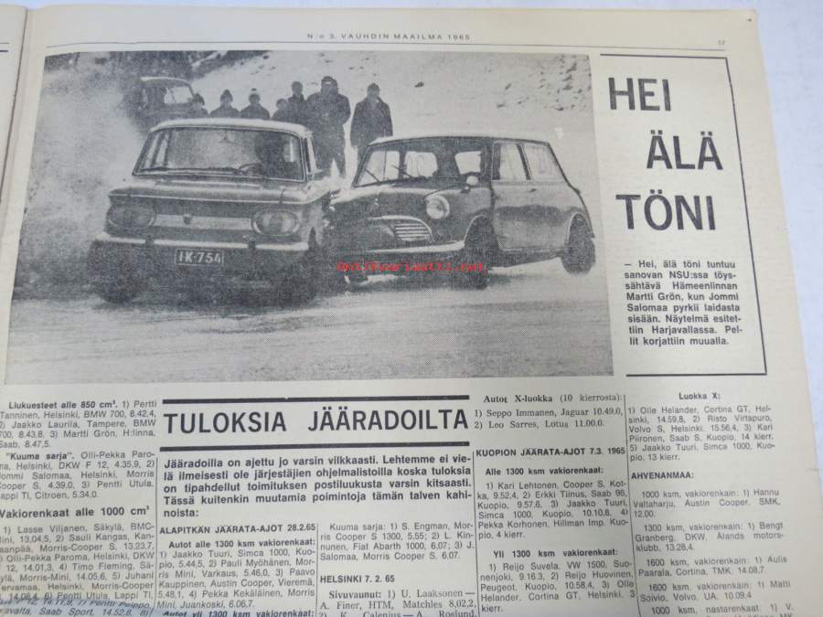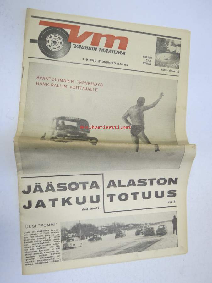 Vauhdin maailma 1965 nr 3, Jääsota Fiat Abarth / Leo Kinnunen, Pekka Keskitalo, Hankiralli, Ford voitti Daytonan, Porsche 904 & 911, FK Mikroautot, Olle Bromark...