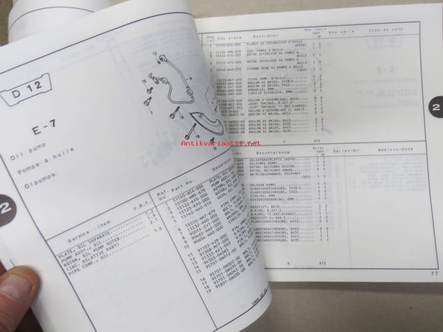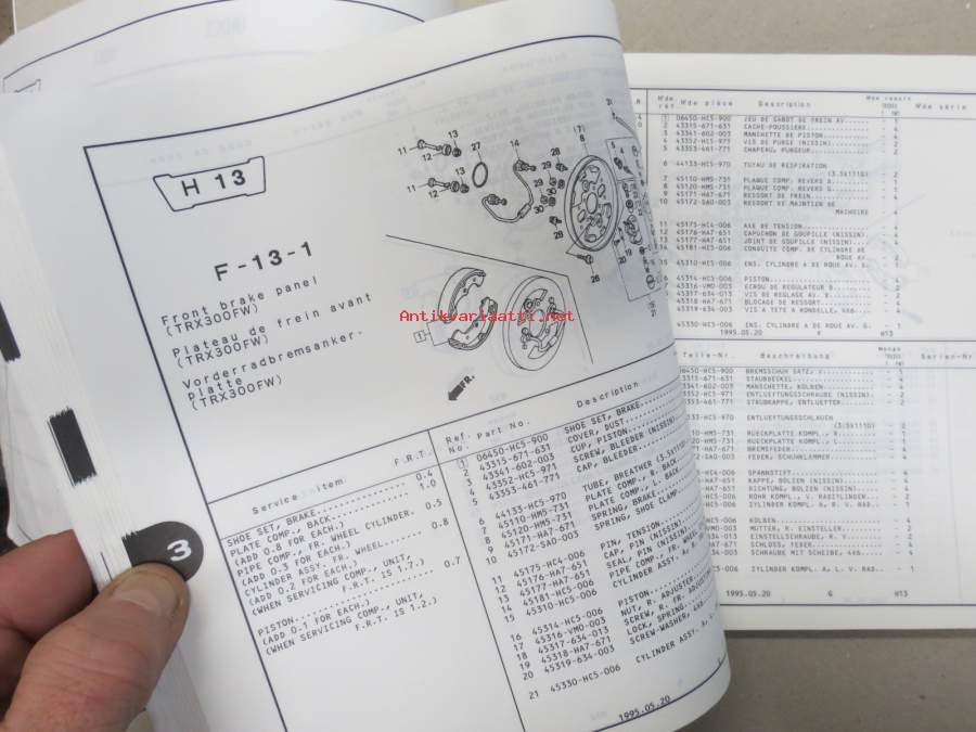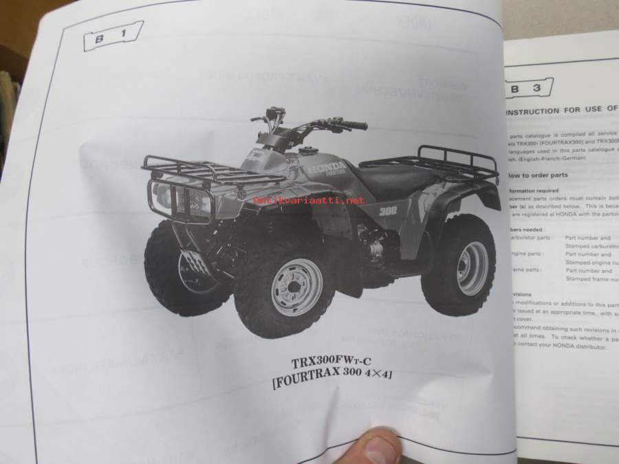 Honda TRX300t (Fourtrax 300), TRX300FWt (Fourtrax 300 4x 4) Parts Catalogue -varaosaluettelo
